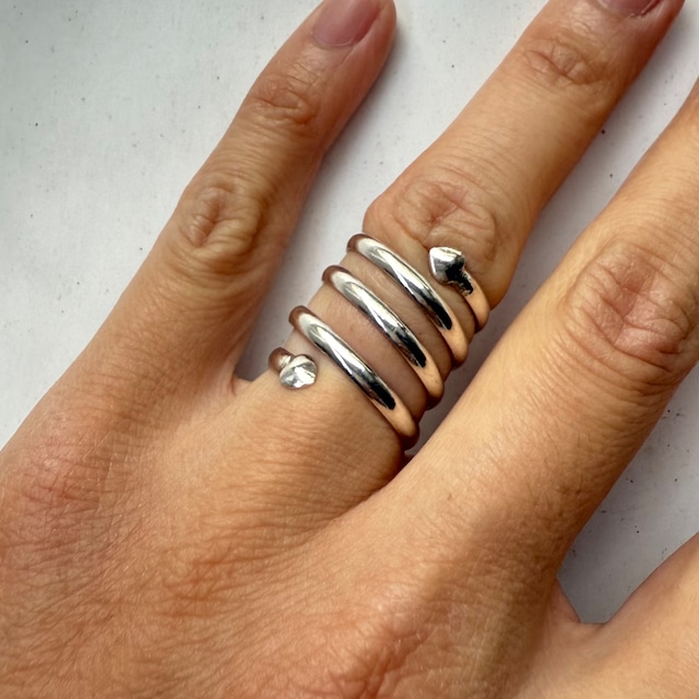 ■商品の説明 サラッとつけたいヤツも。 グルグルっと巻いた両先に小さなハート。 このデザインならユニセックスでつけられるかと思います。 シルバー925表記あり。 サイズは多少広がりますが、13〜14号くらい。 ■Color…「Silver」 ■size...13〜14号くらい(US6.5) ■condition…USED(着用に支障のある目立つダメージ汚れはございません) ■material…Silver925(刻印アリ)