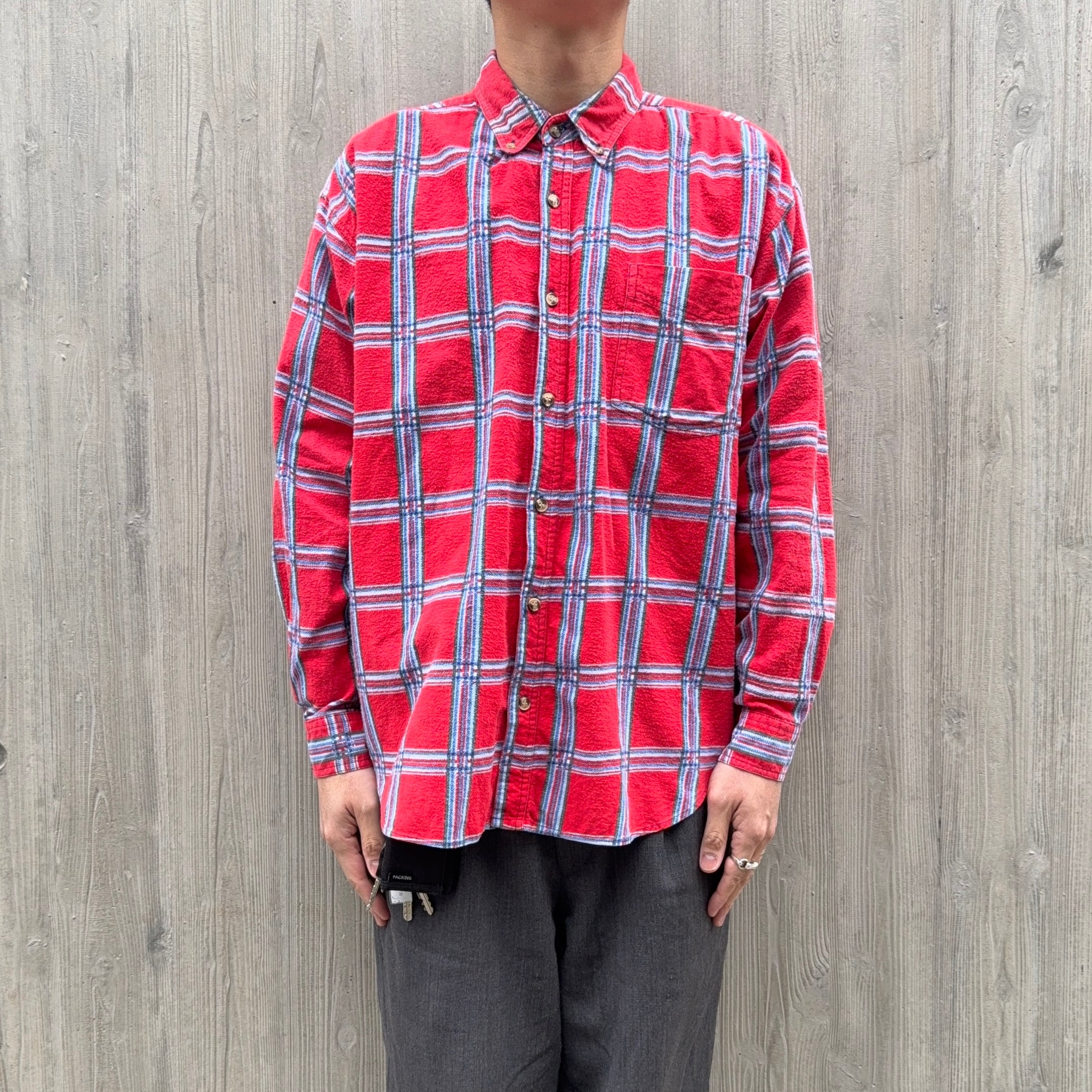 赤チェックのネルシャツは、昔から今に至るまで古着好き界隈では嫌がられているジャンル、ソレもそのはず、赤チェックなんて、1番どこにでもあるアイテムかつアメカジの空気感が出過ぎて難しいアイテムだからだと思っています。
