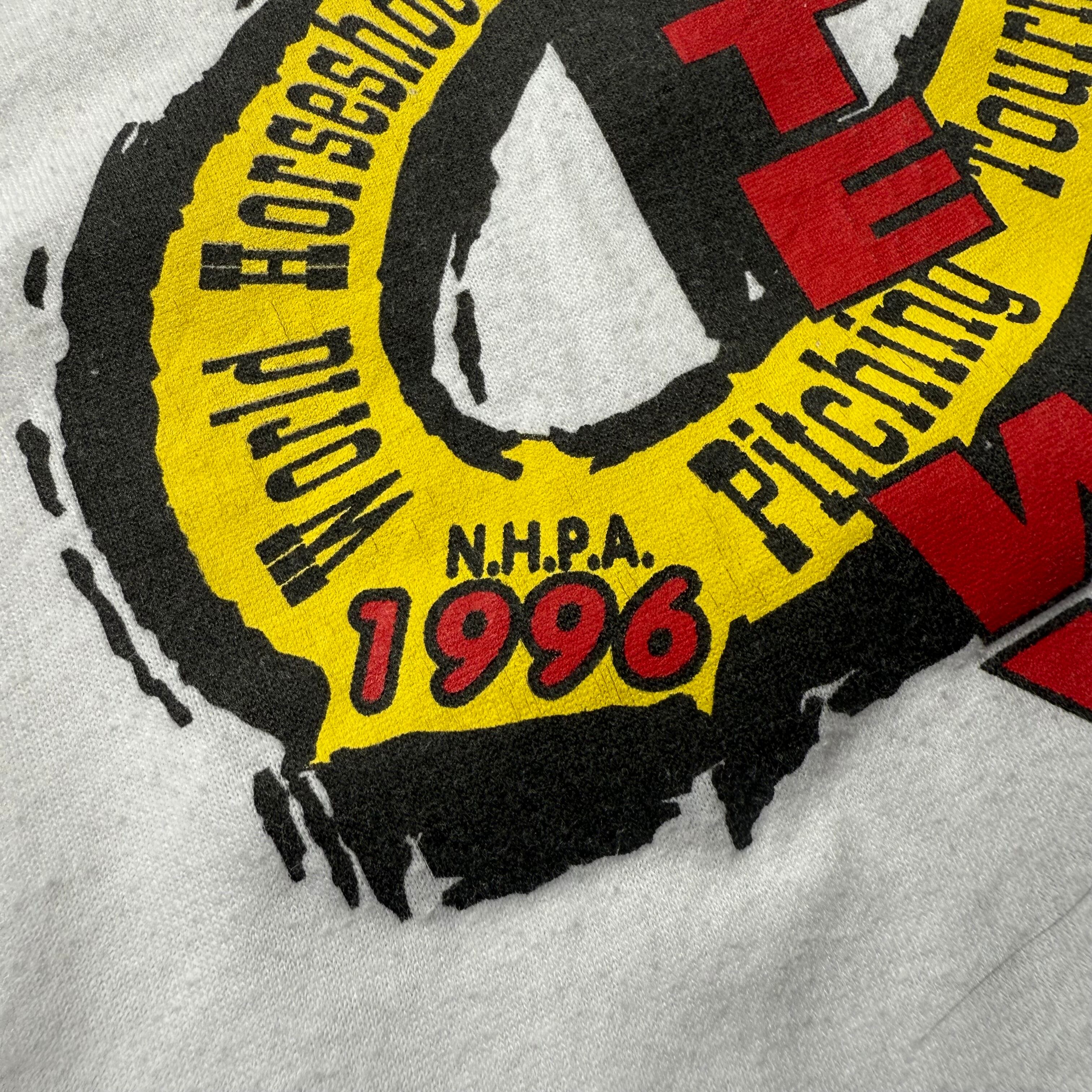 コレは完全なるエゴですが、昔から馬のプリントや馬関連の物は売れるか売れないかは2の次に買ってしまいます。やっぱりコレも競馬好きの性です、G-1もガンガン始まってますし1番楽しい時期です。しかし、コレはよくよく調べてみると、馬蹄を投げるスポーツの大会Tのようでした、どちらにせよプリントもクールなので馬好きにはたまらない1着です