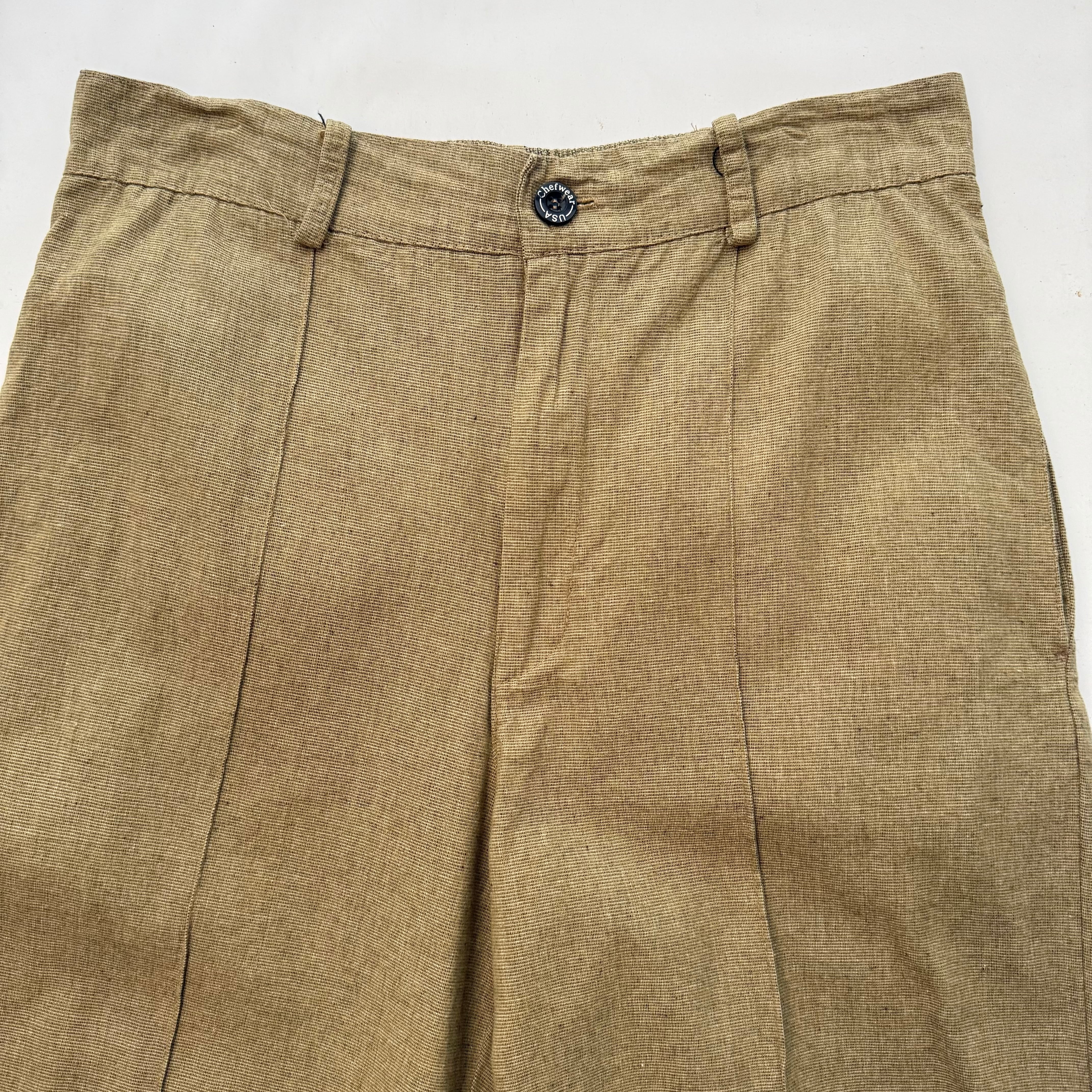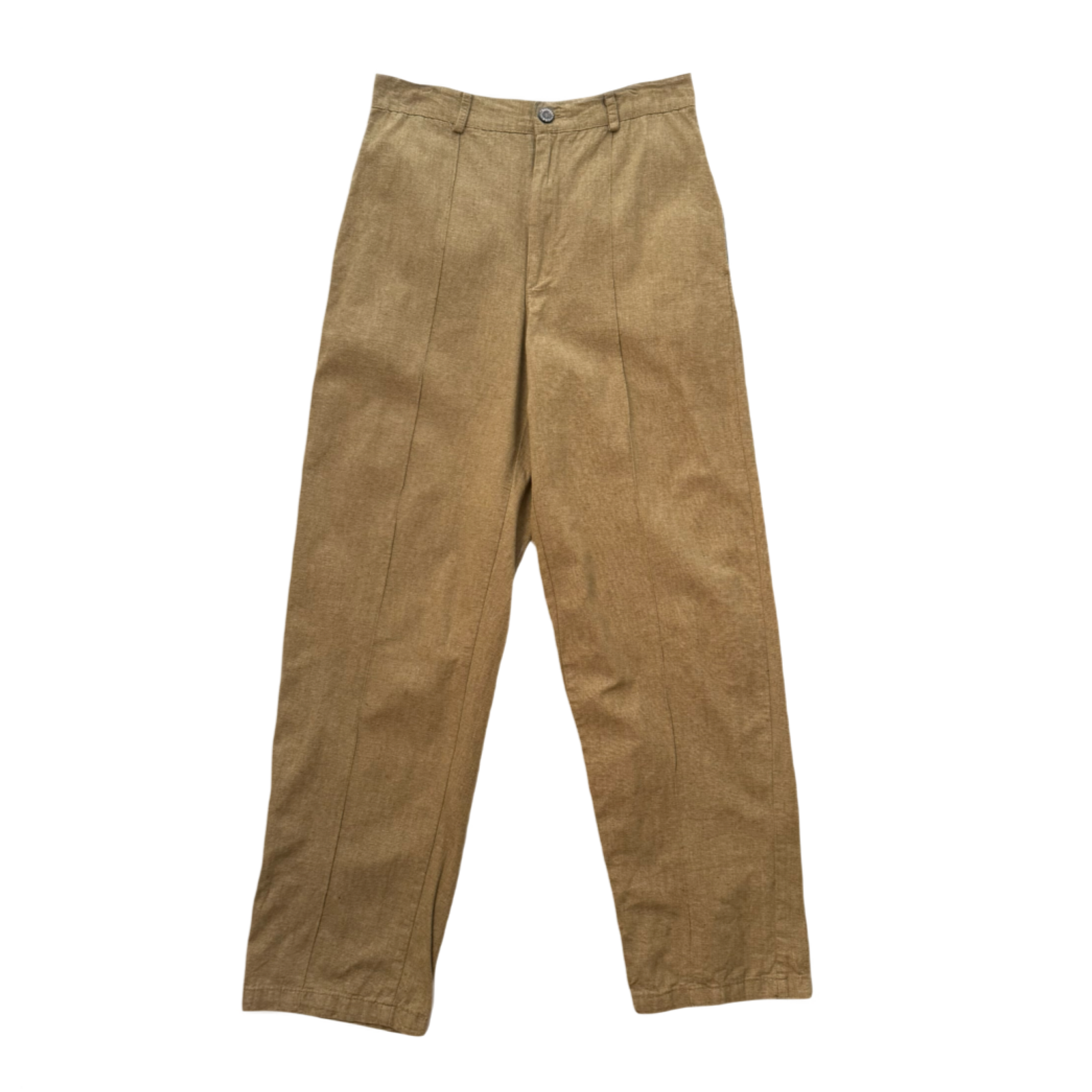 草木のような色味にインド綿のような乾いた質感のシェフのユニフォーム。動きやすさは勿論、センタープレスが入ったキレイなストレートシルエット、腰後ろはゴムなので楽チンです。