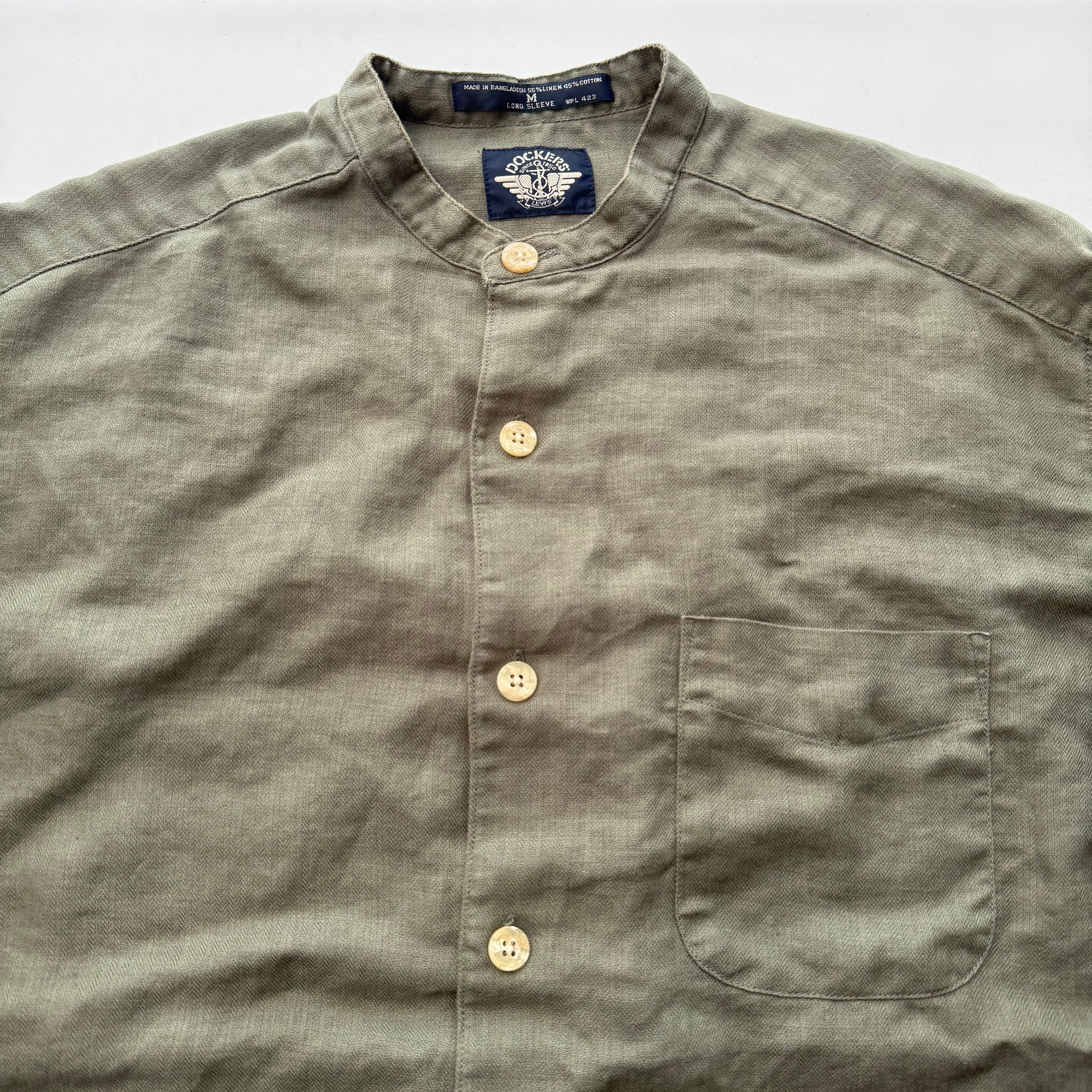 90’s Vintage “DOCKERS” Linen×Cotton No Collor Shirt