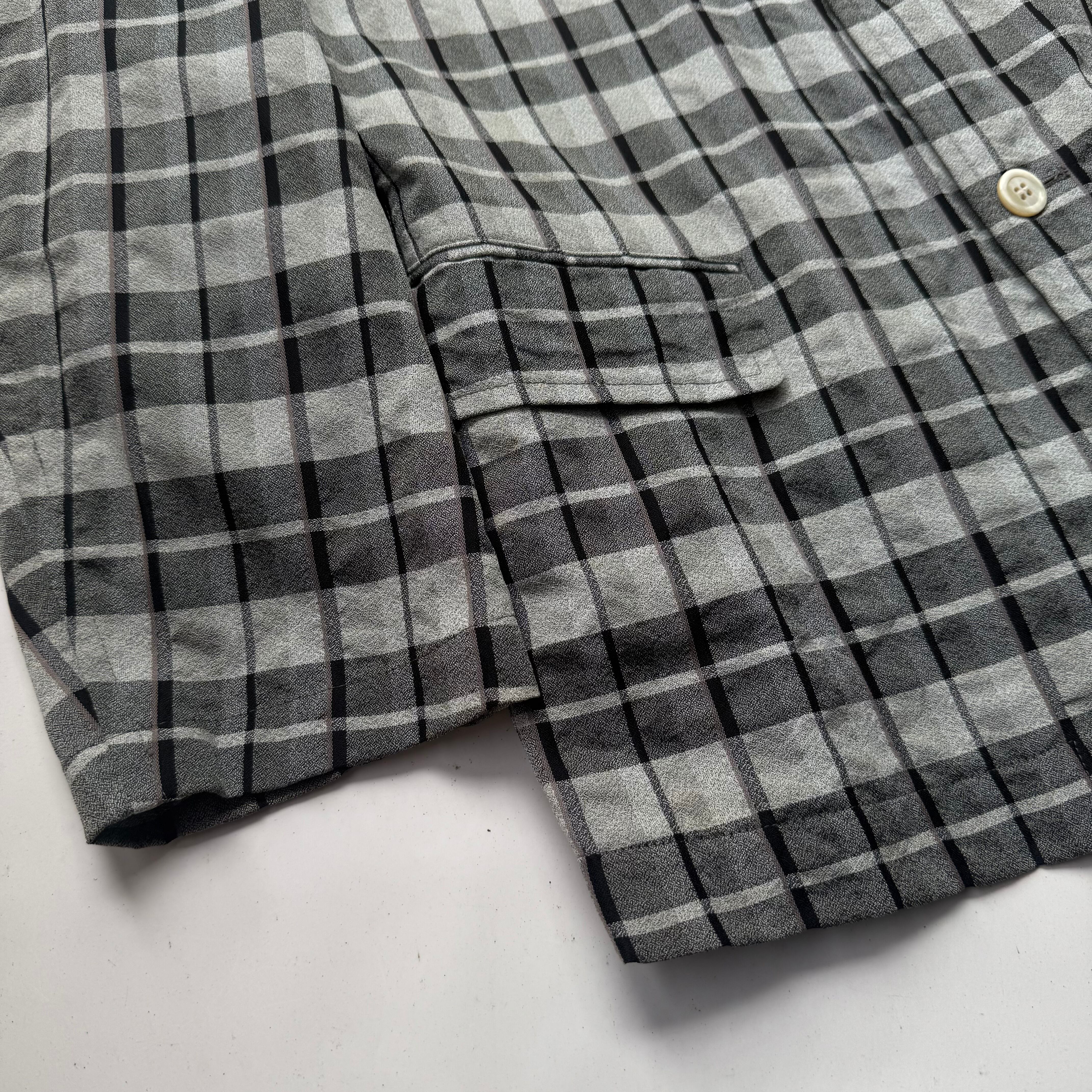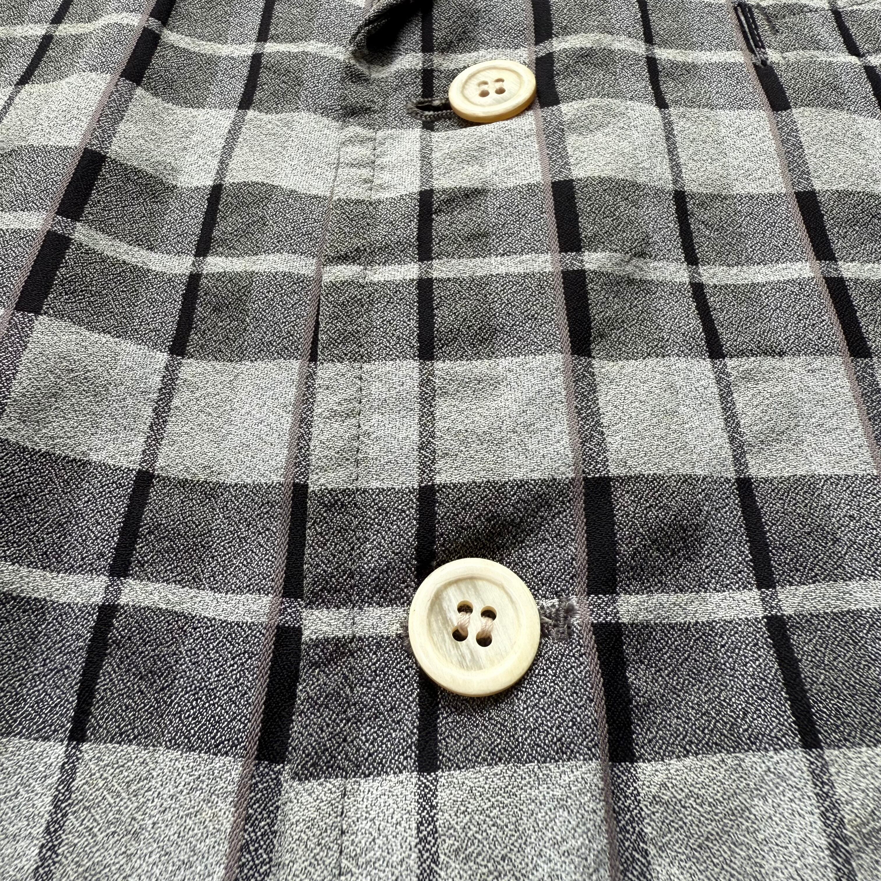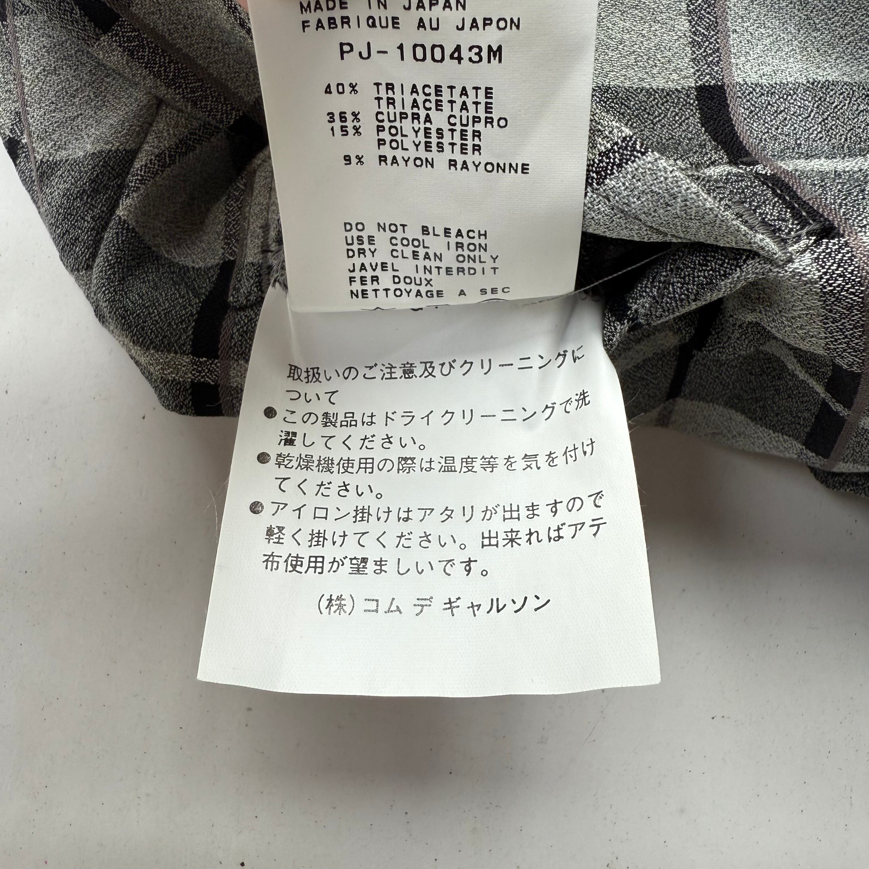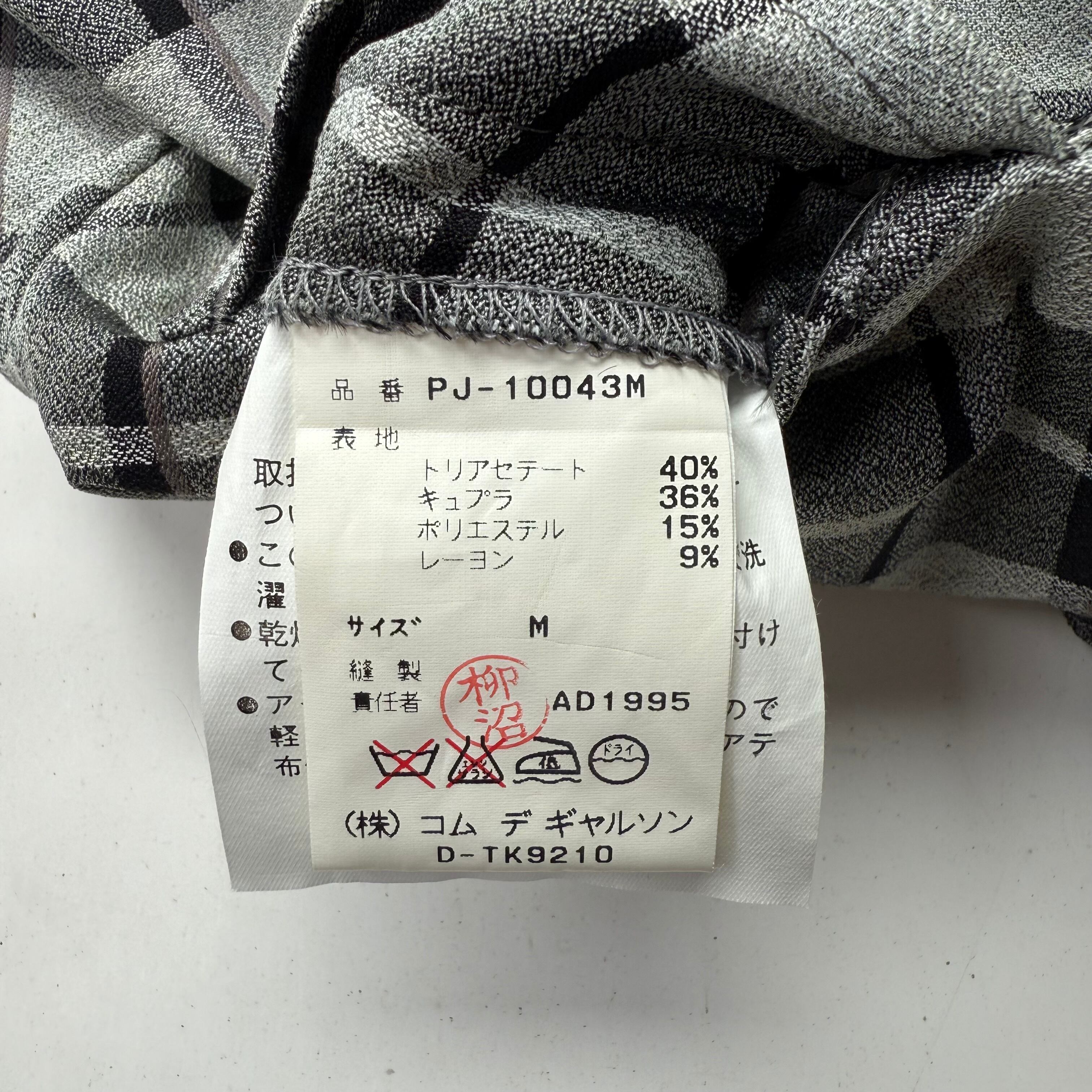 95年の”COMME des GARCONS HOMME PLUS(コレクションライン)”より、最高な1着をご紹介。ラインやグラデーションが効いた、ただの定番のモノトーンチェックでない所に、トリアセテート40%、キュプラ36%、ポリエステル15%、レーヨン9%と言う、あまり触った事がない独自のテキスタイル。ひんやりとした清涼感、緩っとした落ち感、洗ってもシワになりづらくすぐに乾く所。肩パッドもなく、アーカイブピースの中でも、今着てクールな1着かと思います。