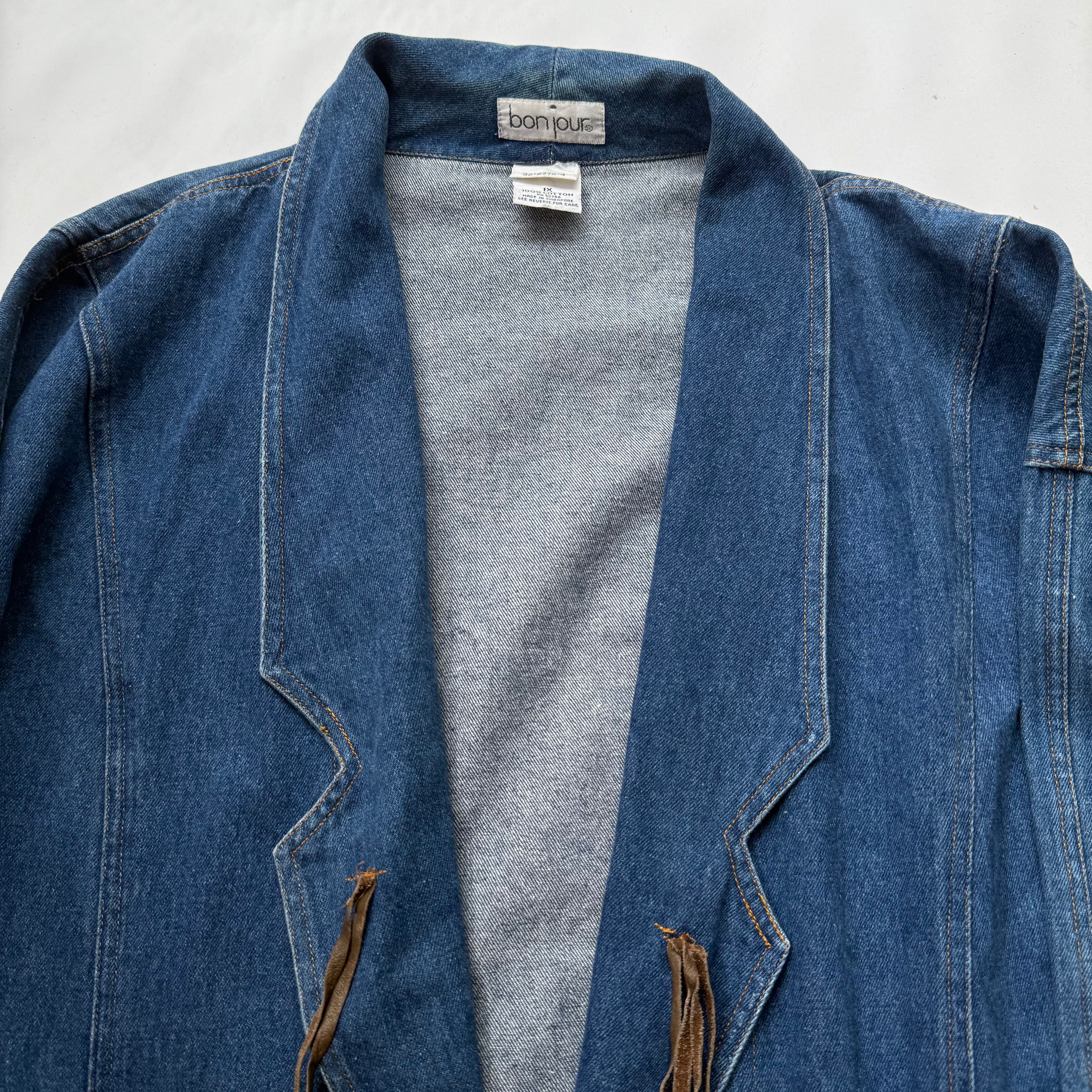 80’s Vintage “bonjour” Denim Tailored Jacket