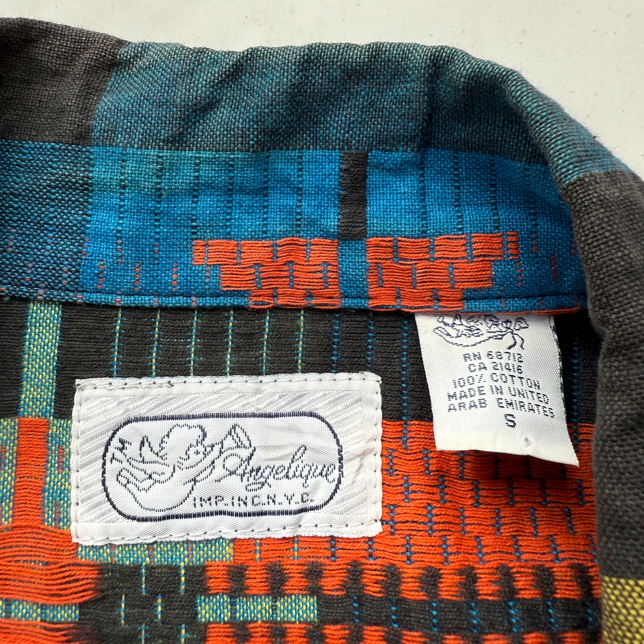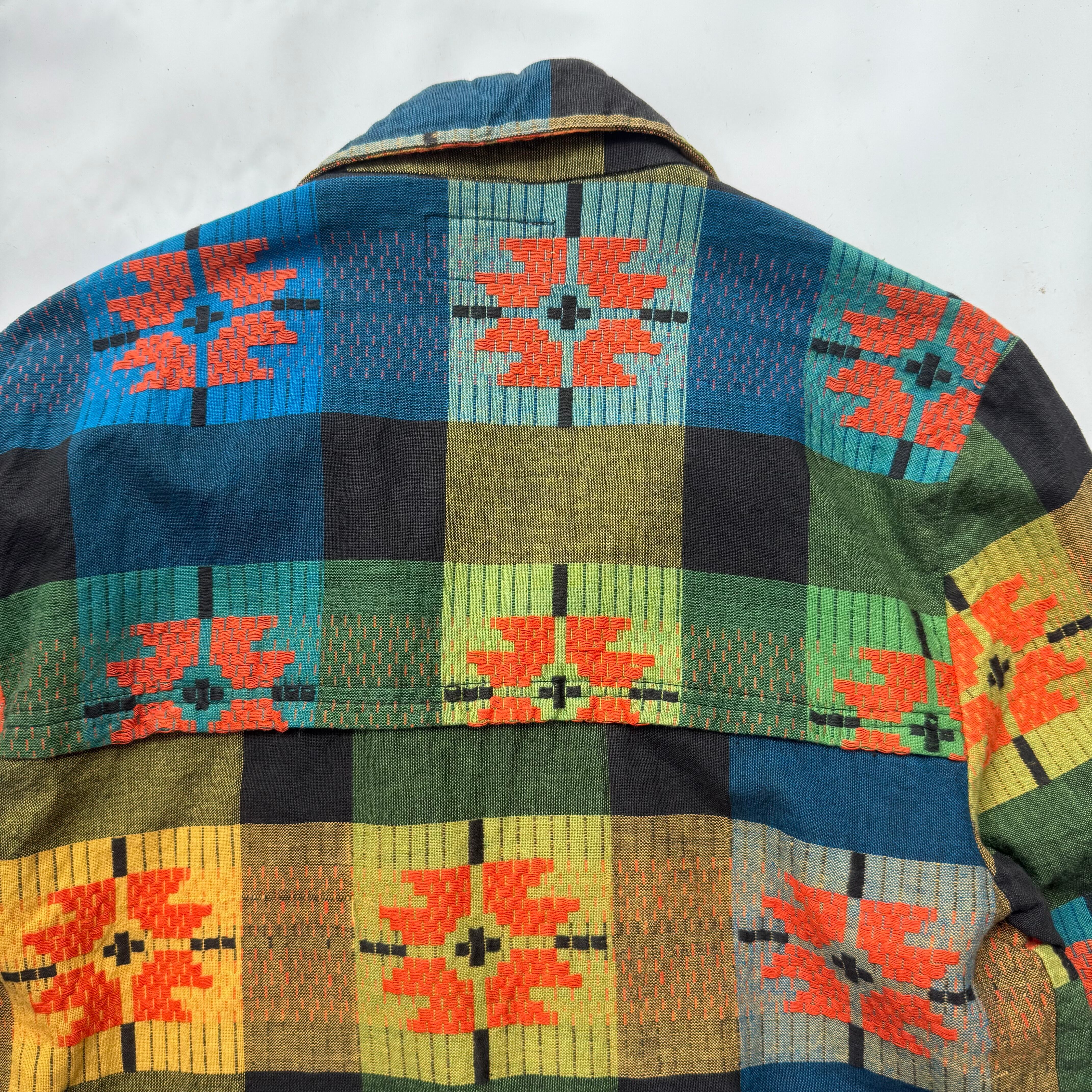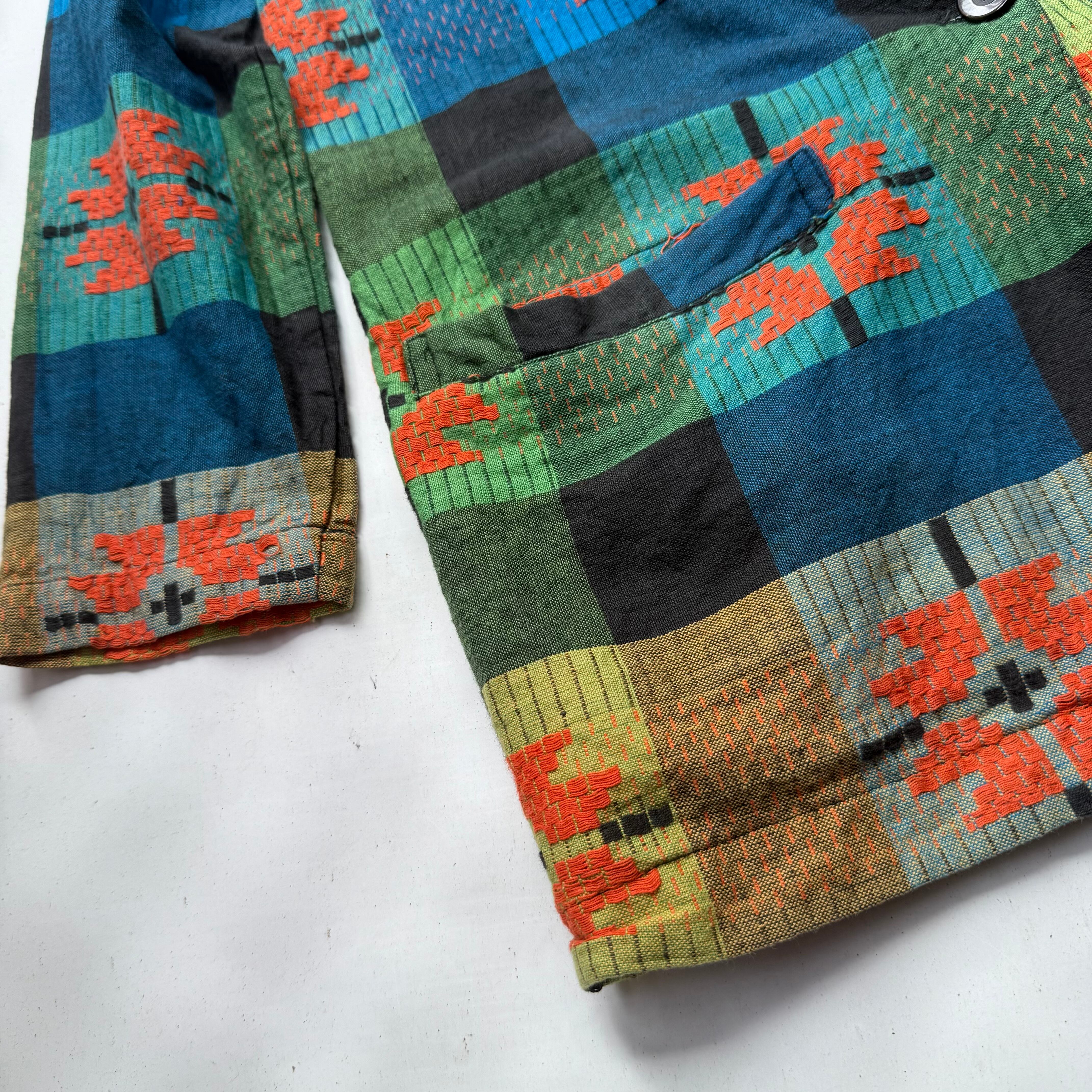 アラブ首長国連邦製の独特な織りが特徴的なコットンテーラードジャケット。インド綿のような軽い質感に、細かな立体感ある刺繍に織り、サイズはSなので小柄な男性や女性にもオススメな1着です。