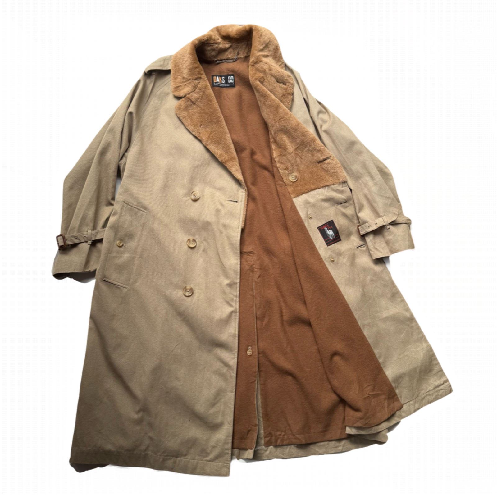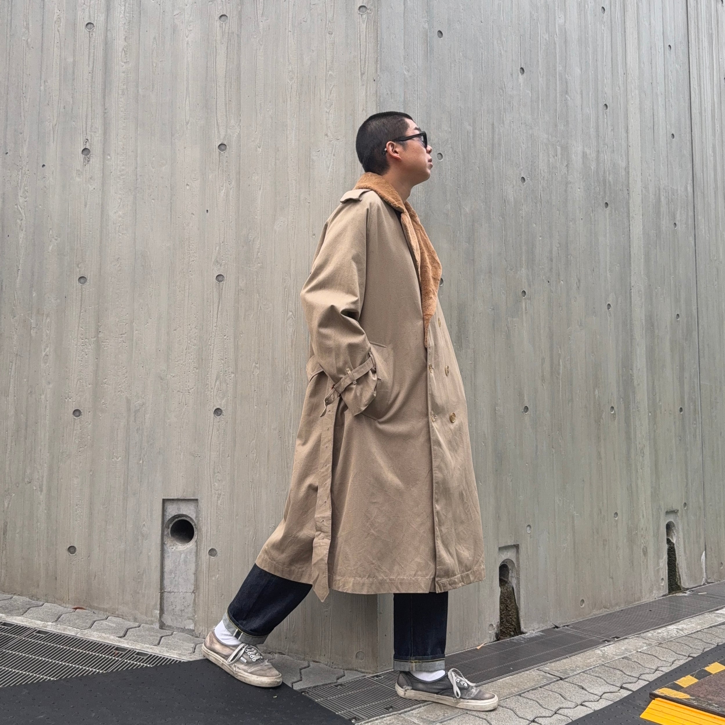 高級だった頃のイギリス製”Daks”、裏地は100%PURE ALPACA PILEで、シルエットもフワッと広がる美しいAラインに、肩周りはキレイに落ちる1枚袖に太めなアームホール、チンスト付き。コレは、滅多に言わないで言葉ですが一生物かもしれません。ぶっちゃけバーバリーの1枚袖より珍しいですしアクアスキュータムなどのもうワンランク上のクオリティー、コレはコートが苦手な方にも一度袖を通してほしいです、シルエットが完璧と言う意味が分かるかと思います。