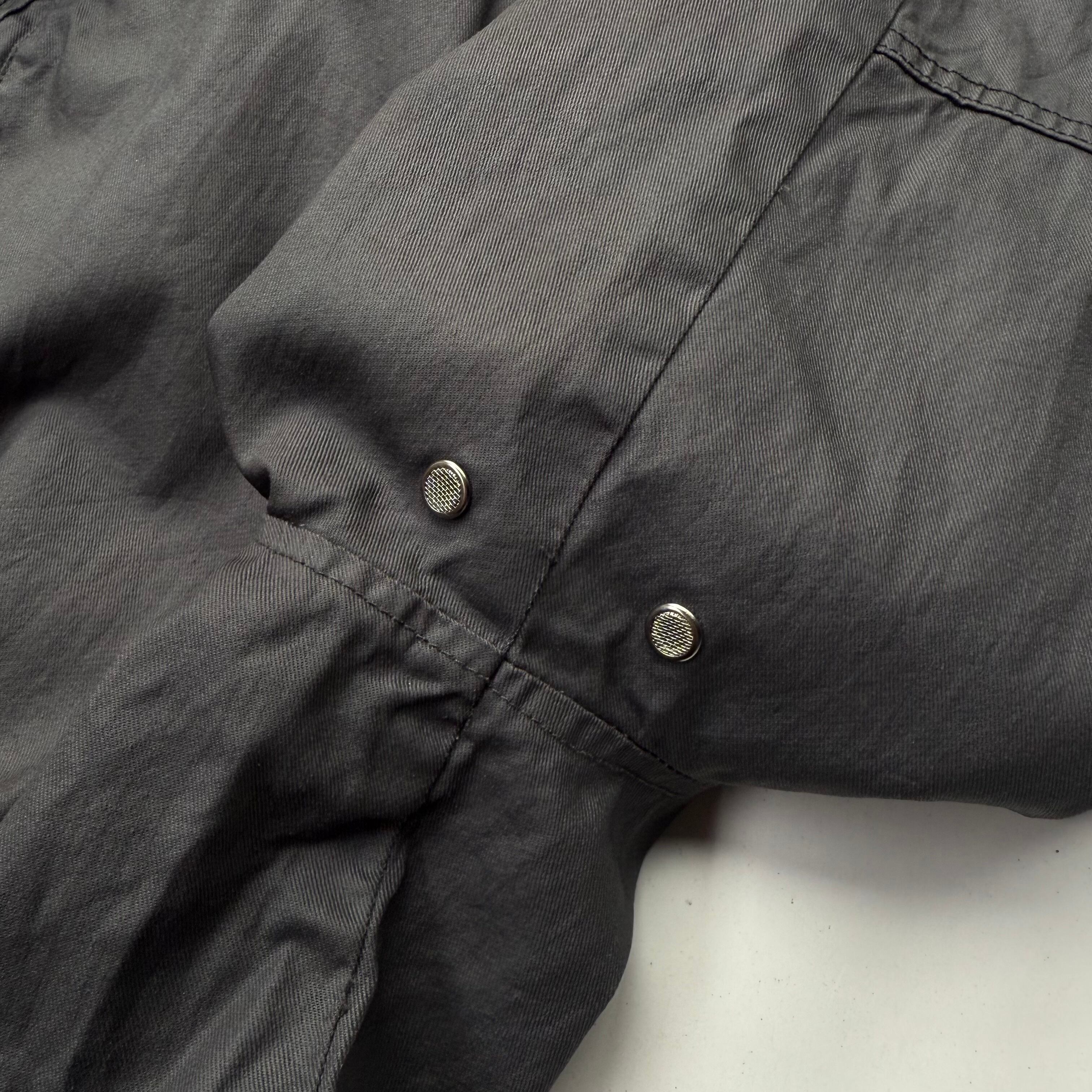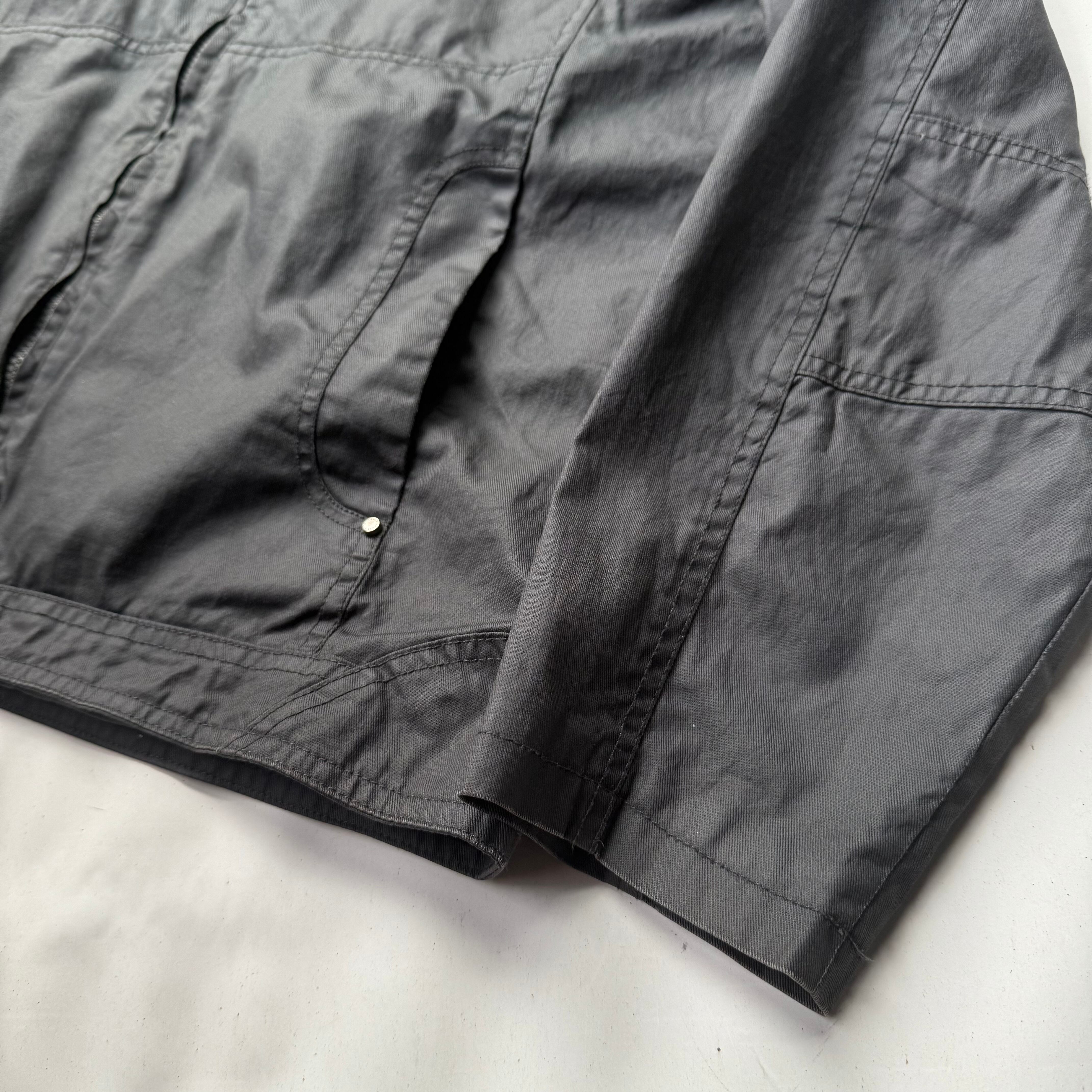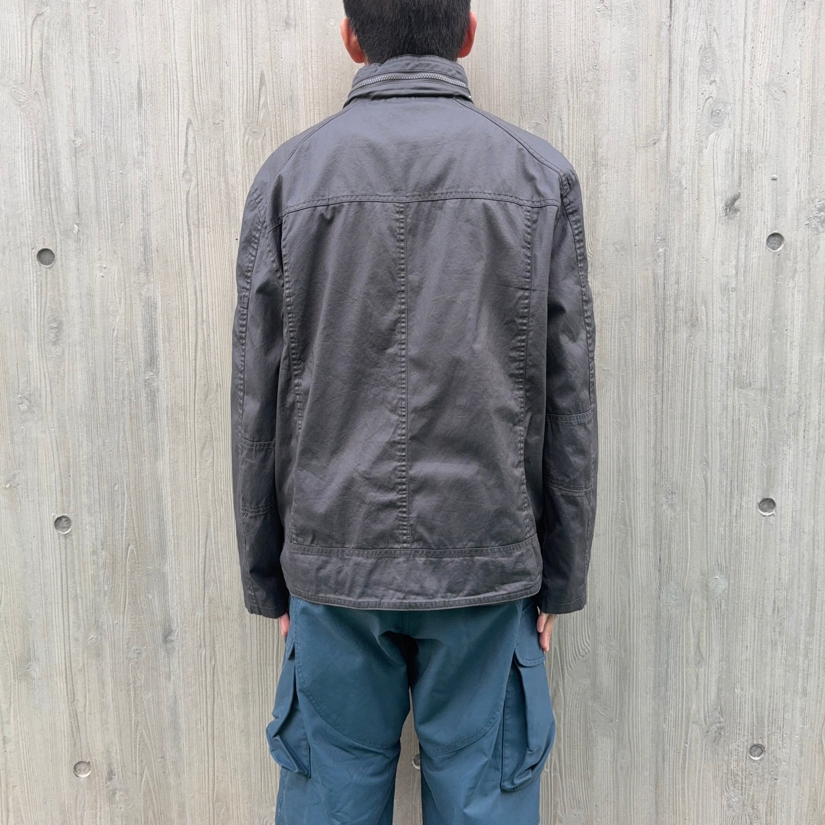 写真だと伝わりずらいかもしれませんが、90’s後期〜00’s初頭辺りに局地的に流行ったラバー(レザー)コーティングジャケット。この質感でコットン、脇下には通気穴、フードもあり、放課後の思い出的Y2K的な1着。懐かしいし、今またクールかなと思います。