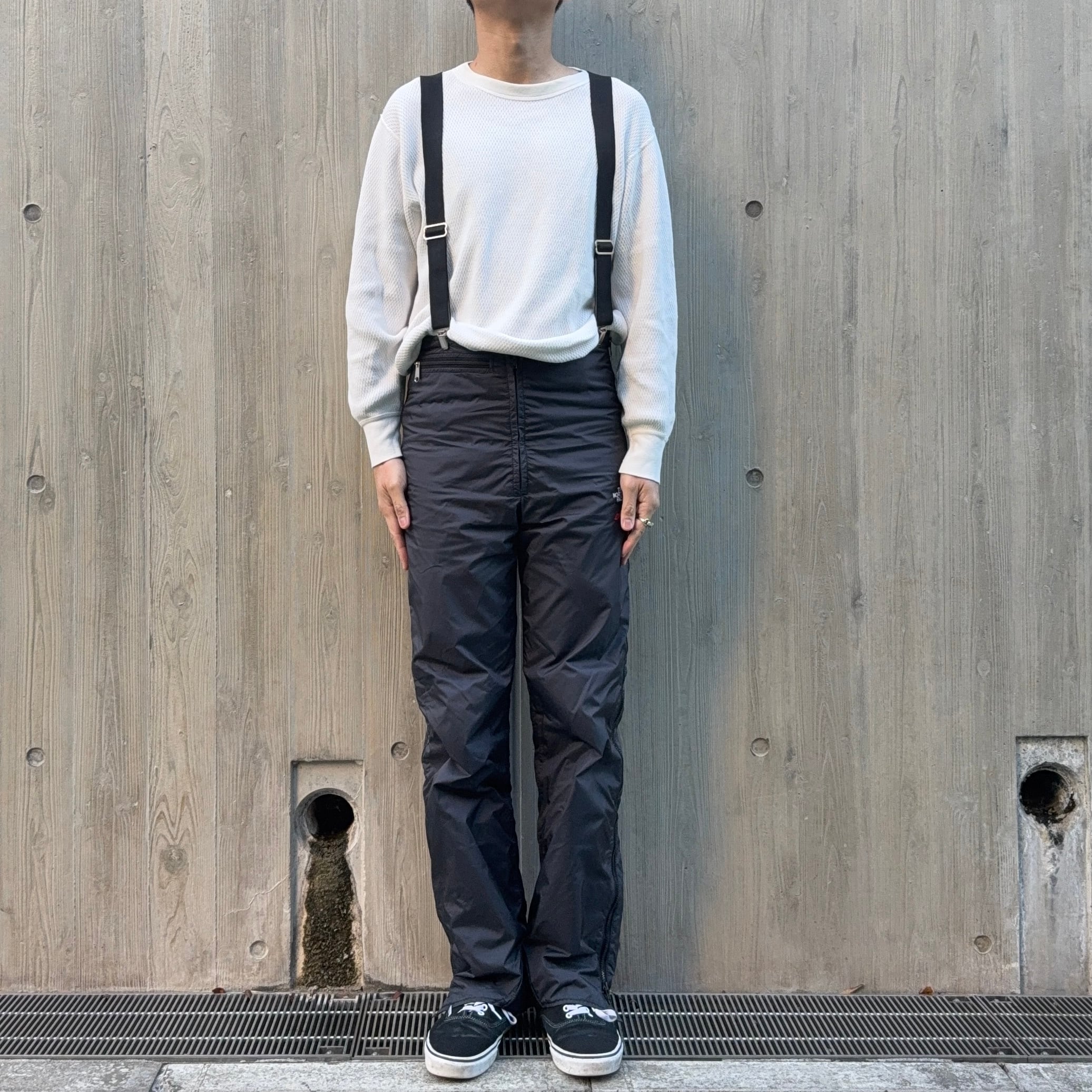 40年くらい前の物なので、ゴアテックスとしてはあまり機能してませんが、小雨くらいなら丁度良かったです。古い物で有名ブランドなのに評価されてない(笑)のも個人的にグッとくるポイントでした。”ノースフェイス”は、ここ何年と全く仕入れていませんが、コレなら穿きたいと言う何周もした”鬼の天邪鬼”派の方に是非。シルエットはスッキリとしてキレイでコーディネート次第ではオシャレ着にもいけます。