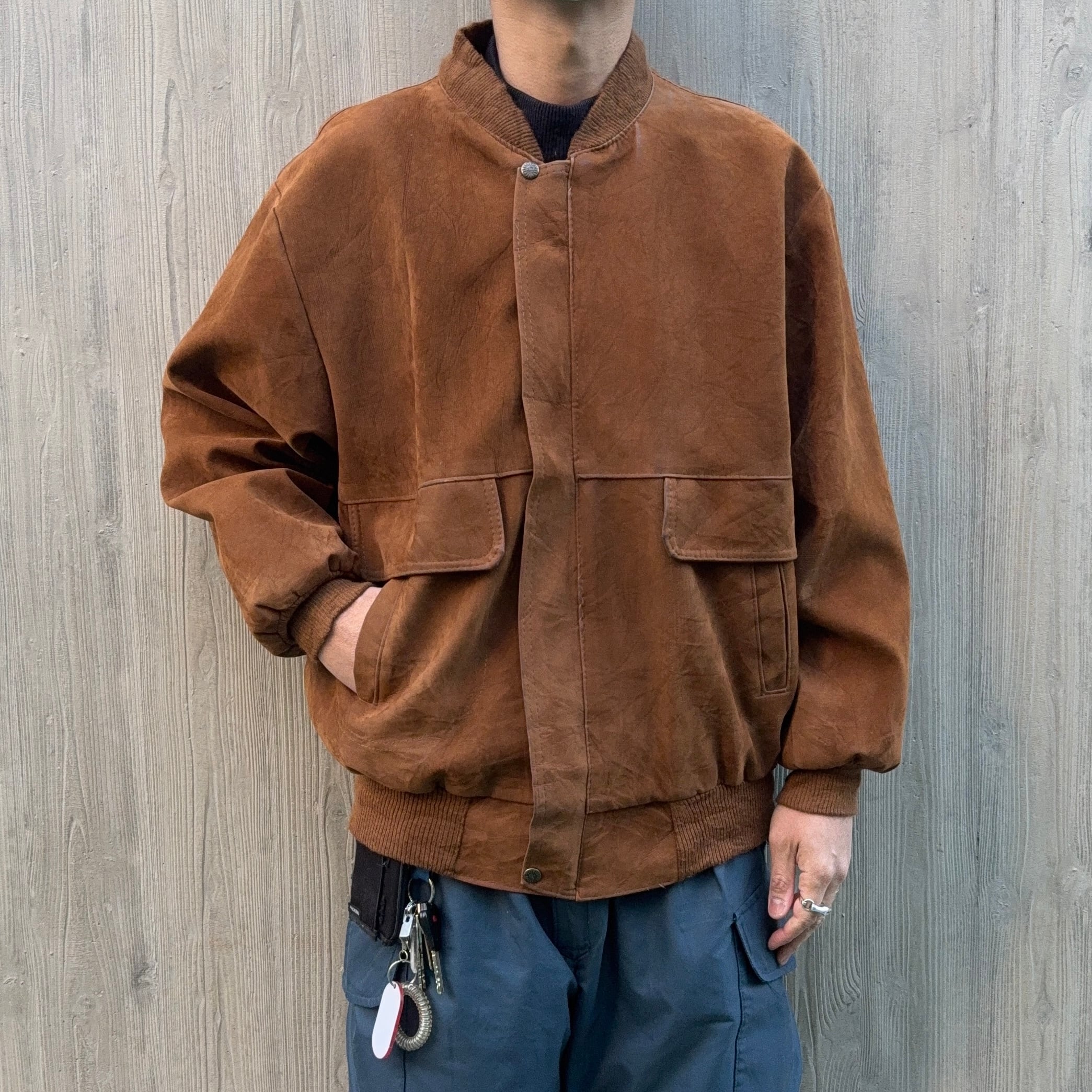 古着好きと言う方は“フェイクスウェード”より本物の”スウェード”が良いと思う方も多いと思いますが、”フェイクスウェード”だからこそファッション性を追求し、物理的に軽くて着やすかったり、独特なシルエットが出せたりする利点もあります。コレがアメリカ製でなく、ファッション重視するイタリアで生まれていると言う所にも妙な説得力がありますね。