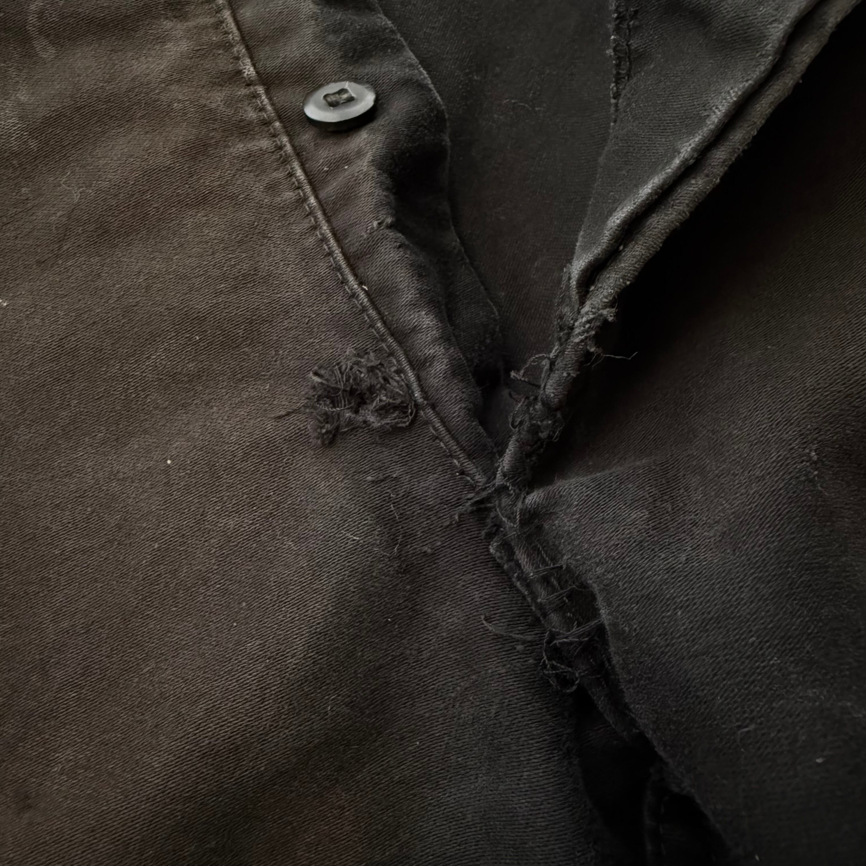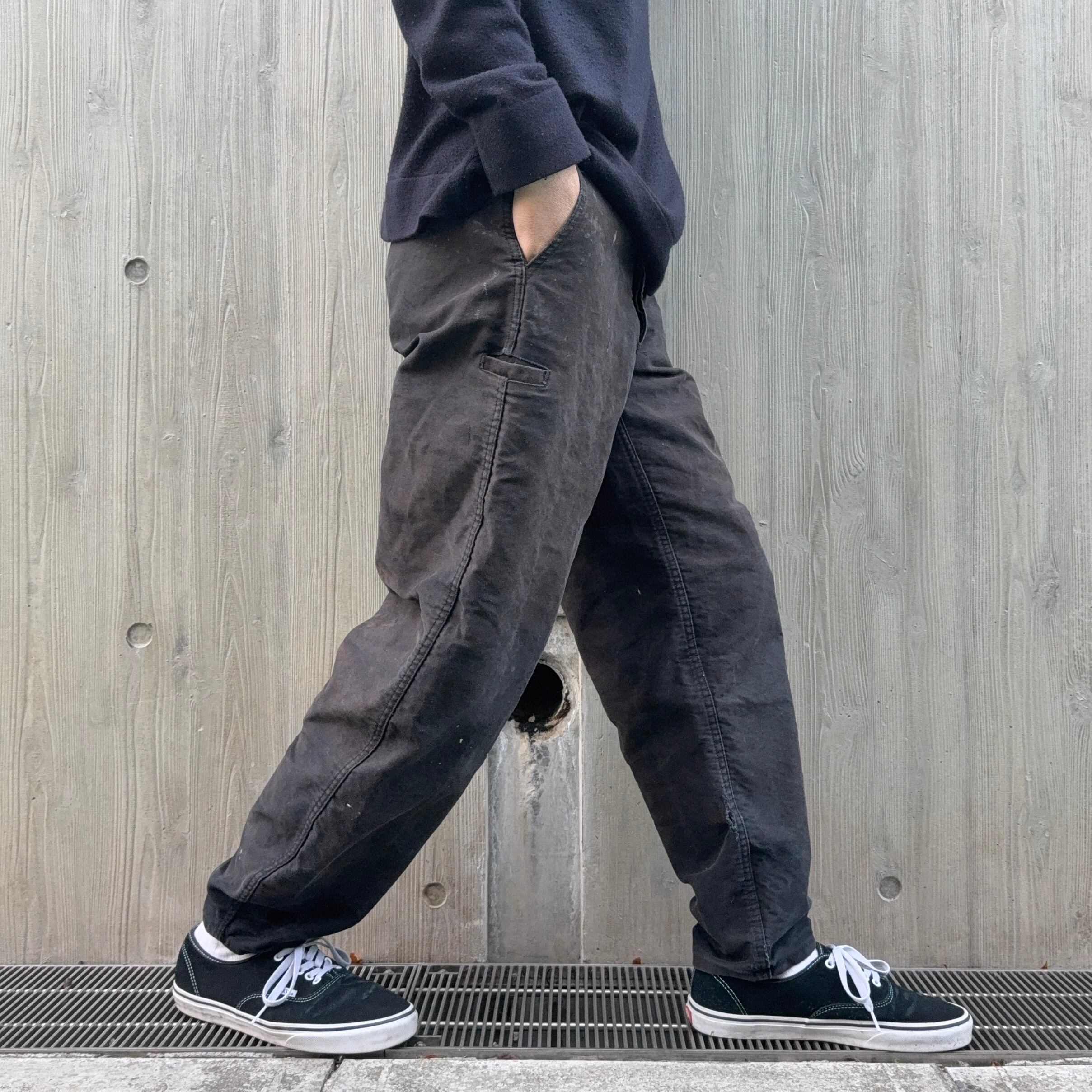 パンツは、放課後の思い出ではあまり扱わないブラックのモールスキン素材のワークパンツですが、コレはボロの雰囲気とサイズ、シルエットが凄く好みでした。タグはハズレていますが、恐らく60’s頃のフランスのワークパンツかと思います。