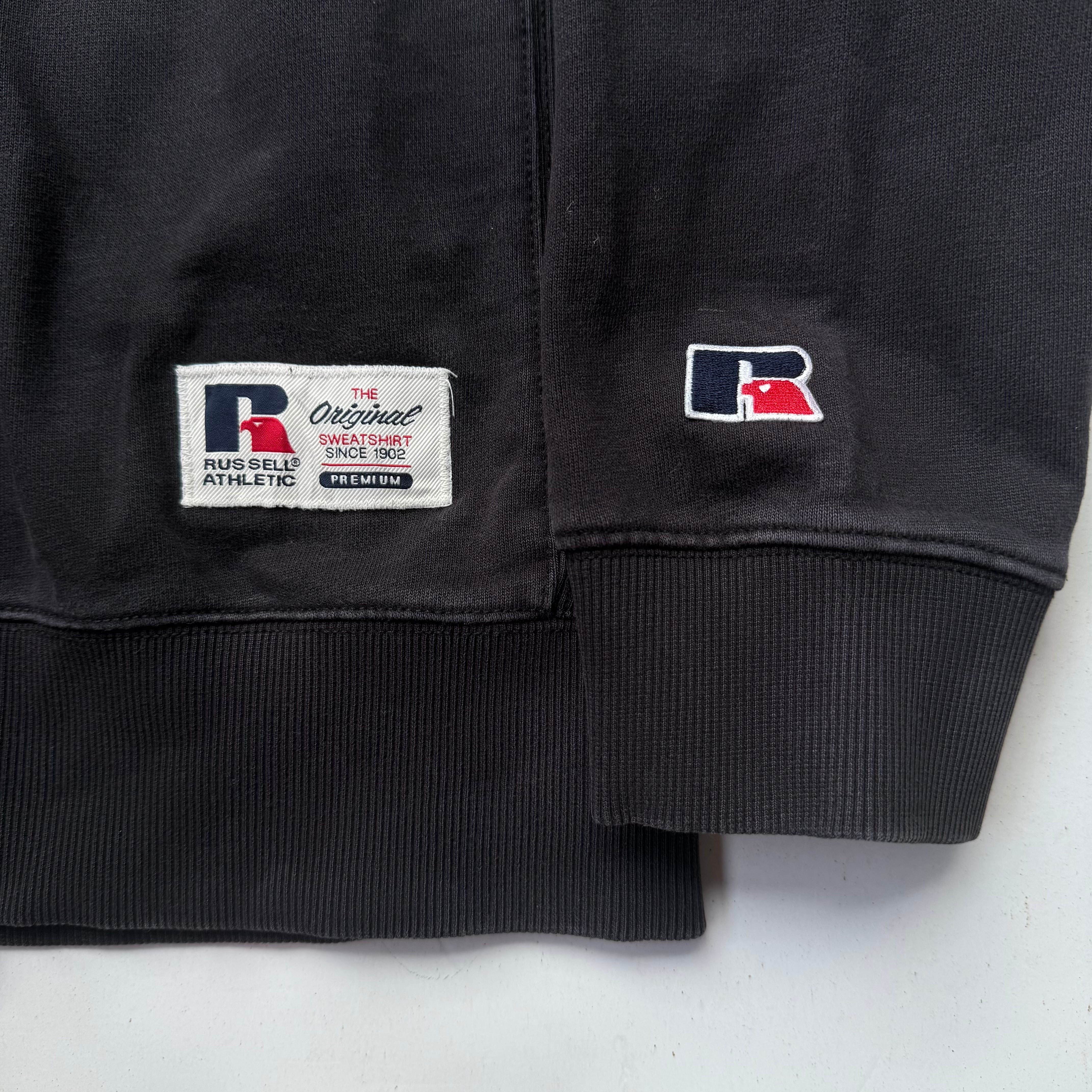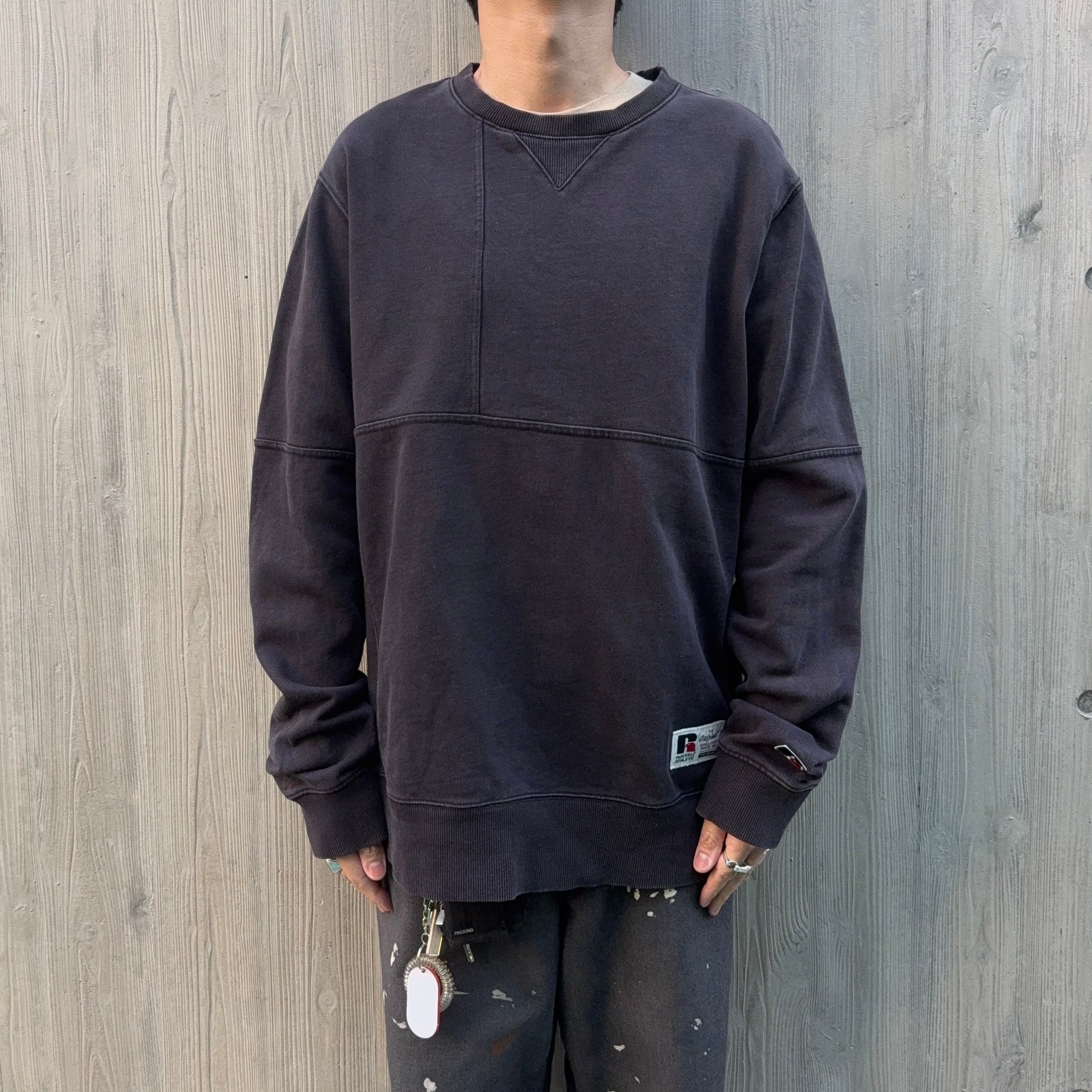 近年物ですが、初見なリバースウィーブ風(なんなら切り替えで再構築のニュアンスも入っている)ラッセルでテンション上がった1着です。ボディーも良きフェード感(コレは加工なのか?オリジナルなのか?)があります。