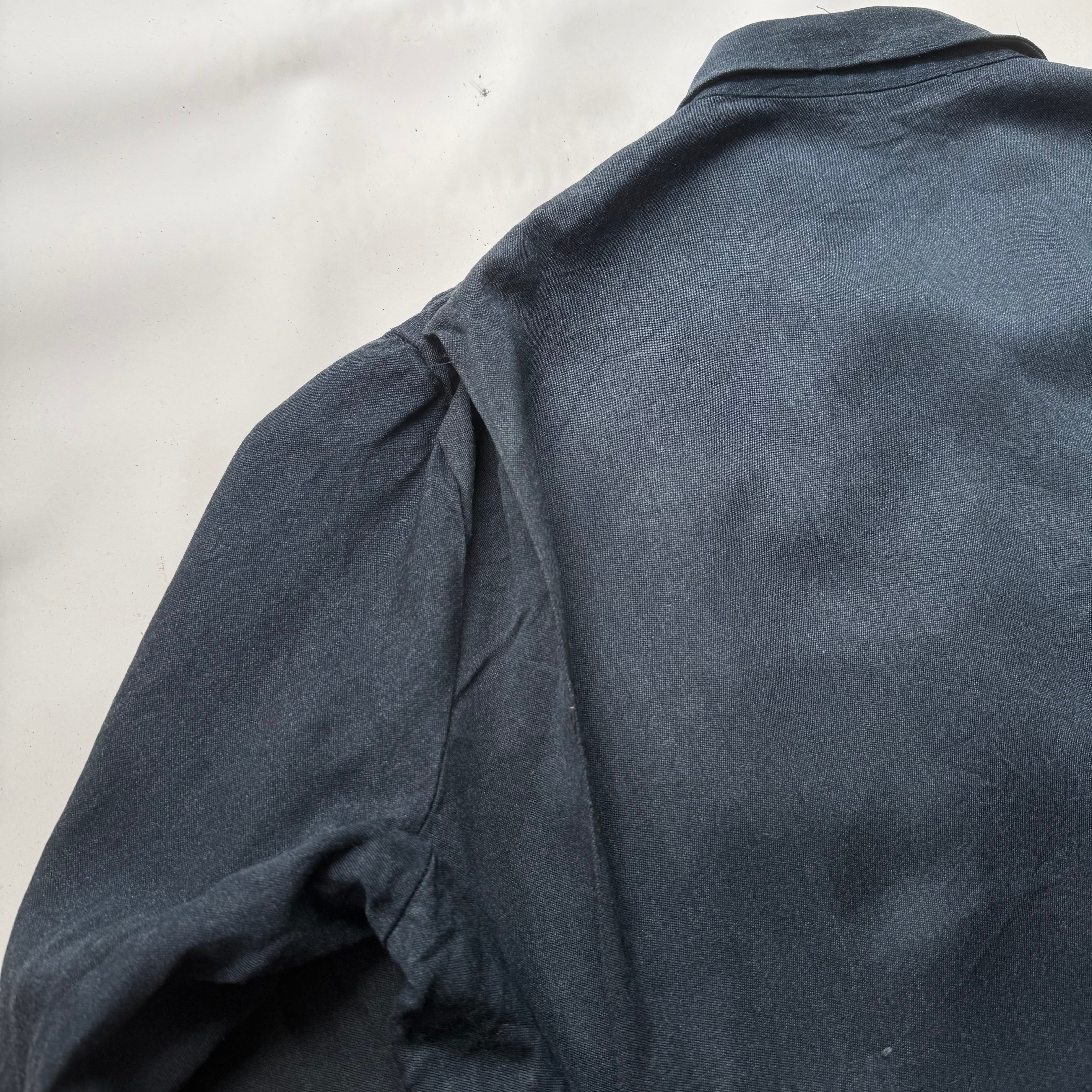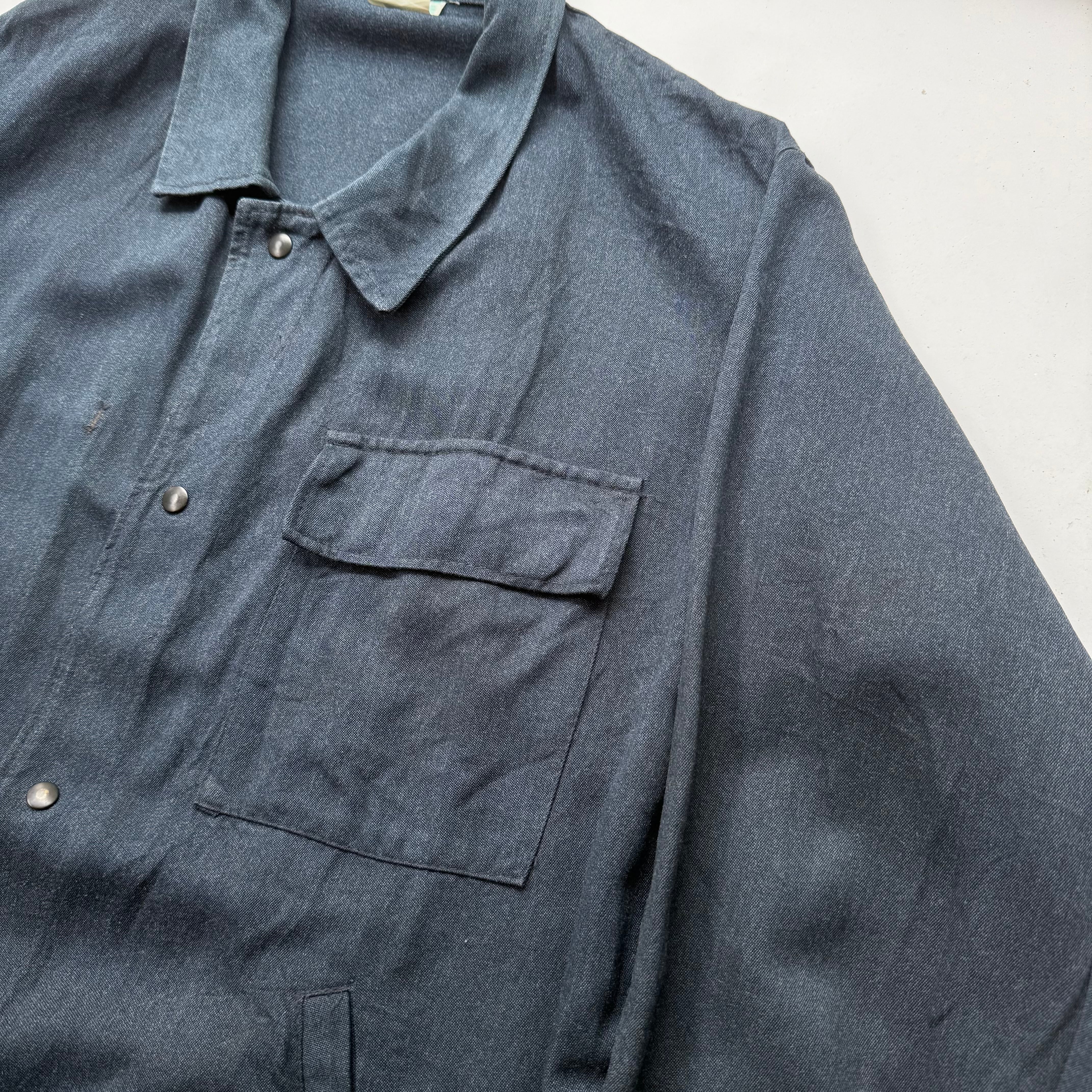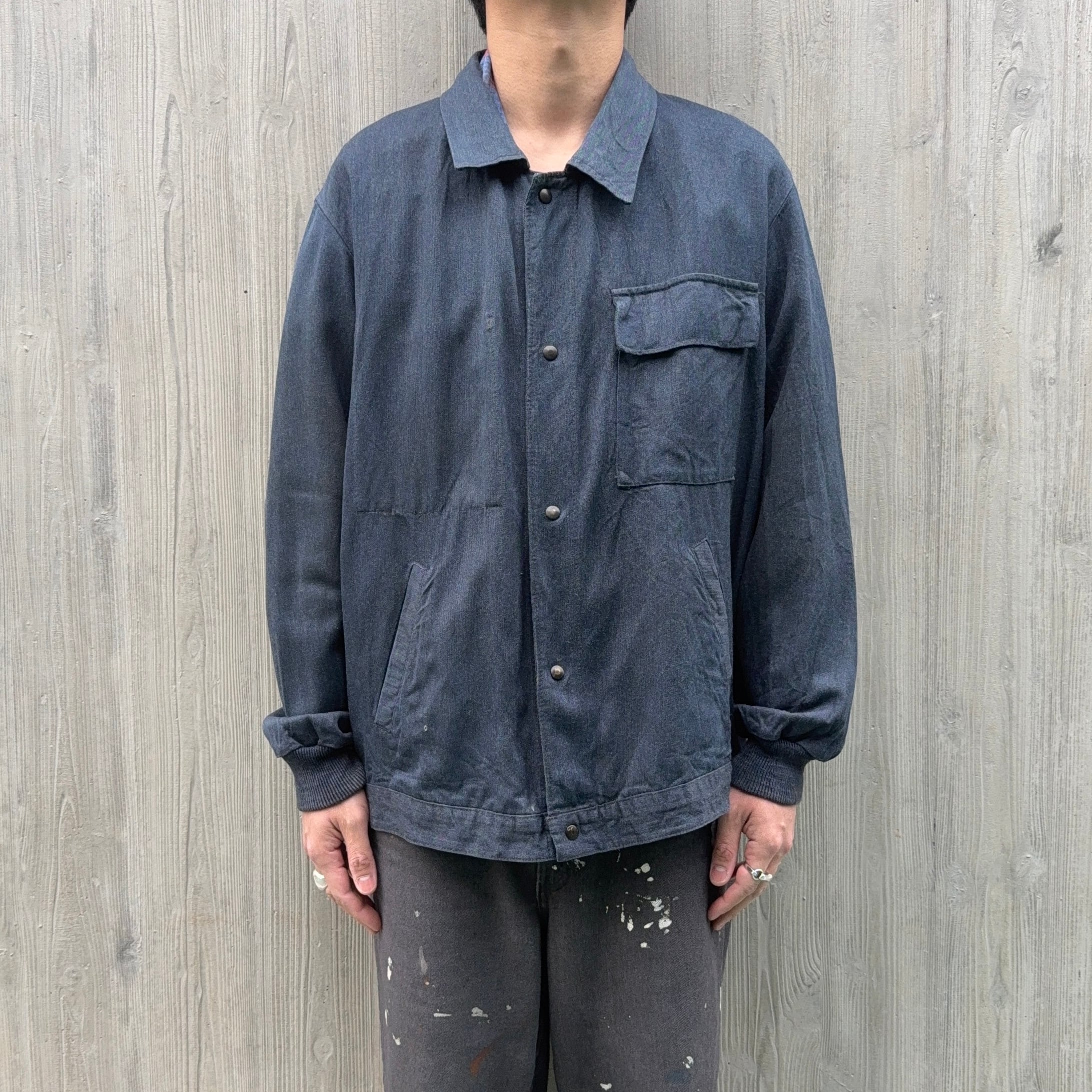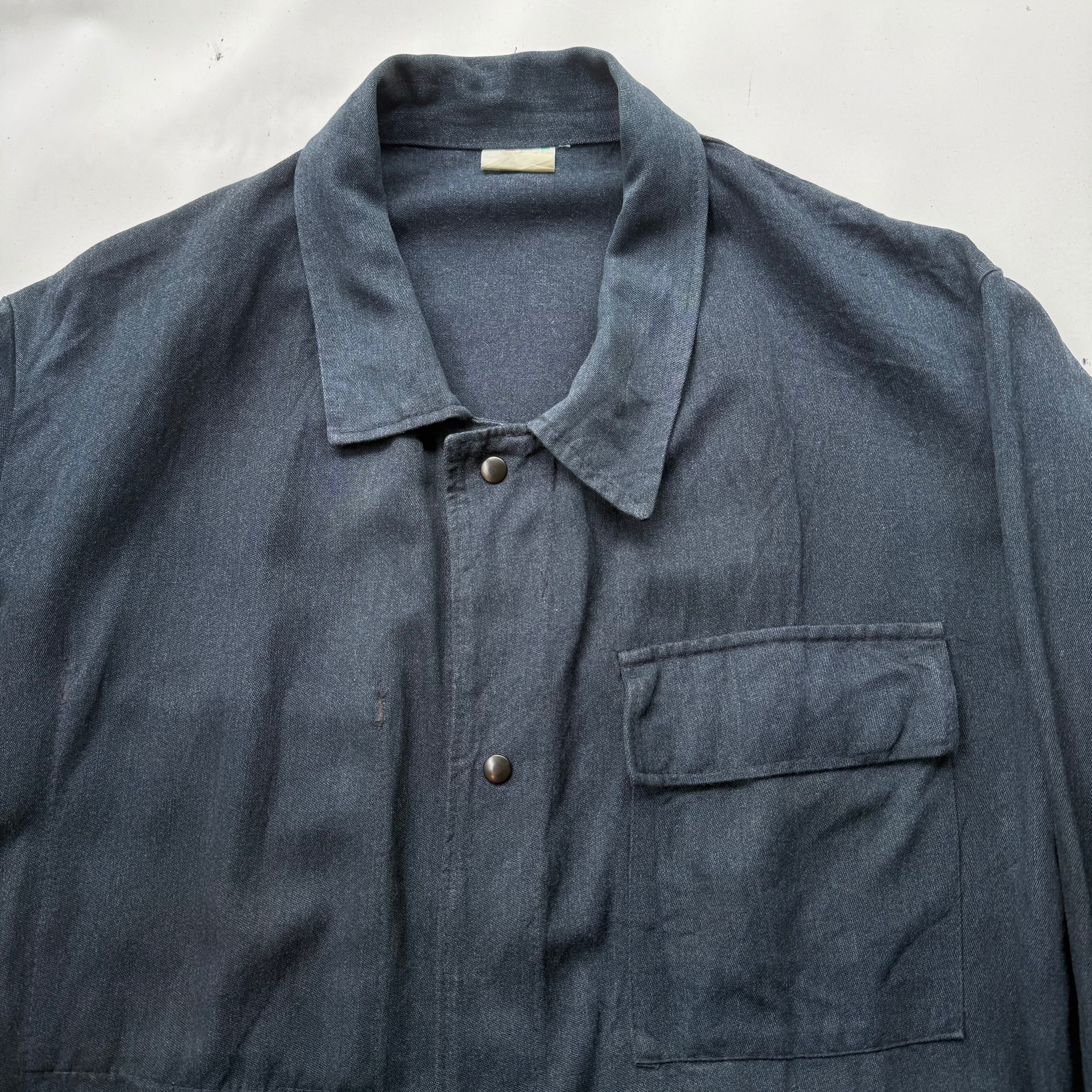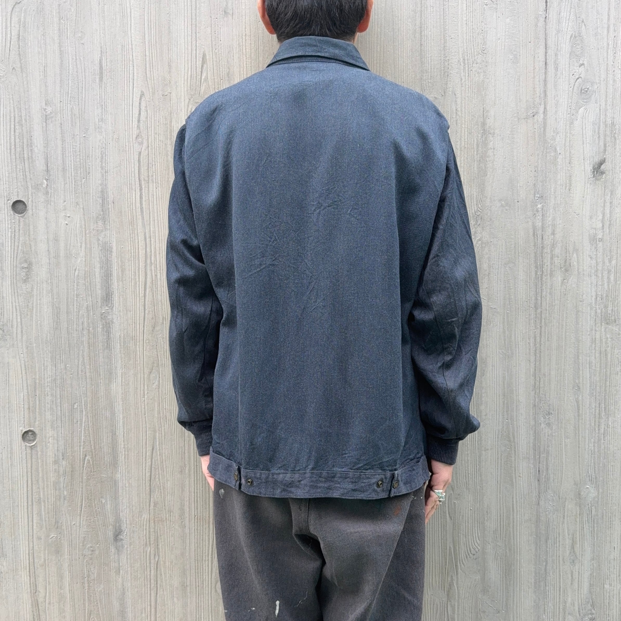 60’s頃のフランス物だと思いますが、コレは詳細不明。ワークジャケット(コーチジャケット風)なデザインで、素材もコットン×ギャバレーヨンのような落ち感にインディゴ染めのような独特な色味。ワークジャケット風に作られたファッション寄りなアイテムな気もしますが、とにかくシルエットがキレイで使いやすく、コレは着たいと思った1着でした。こう言うのがあるから、古着はやめられませんね。
