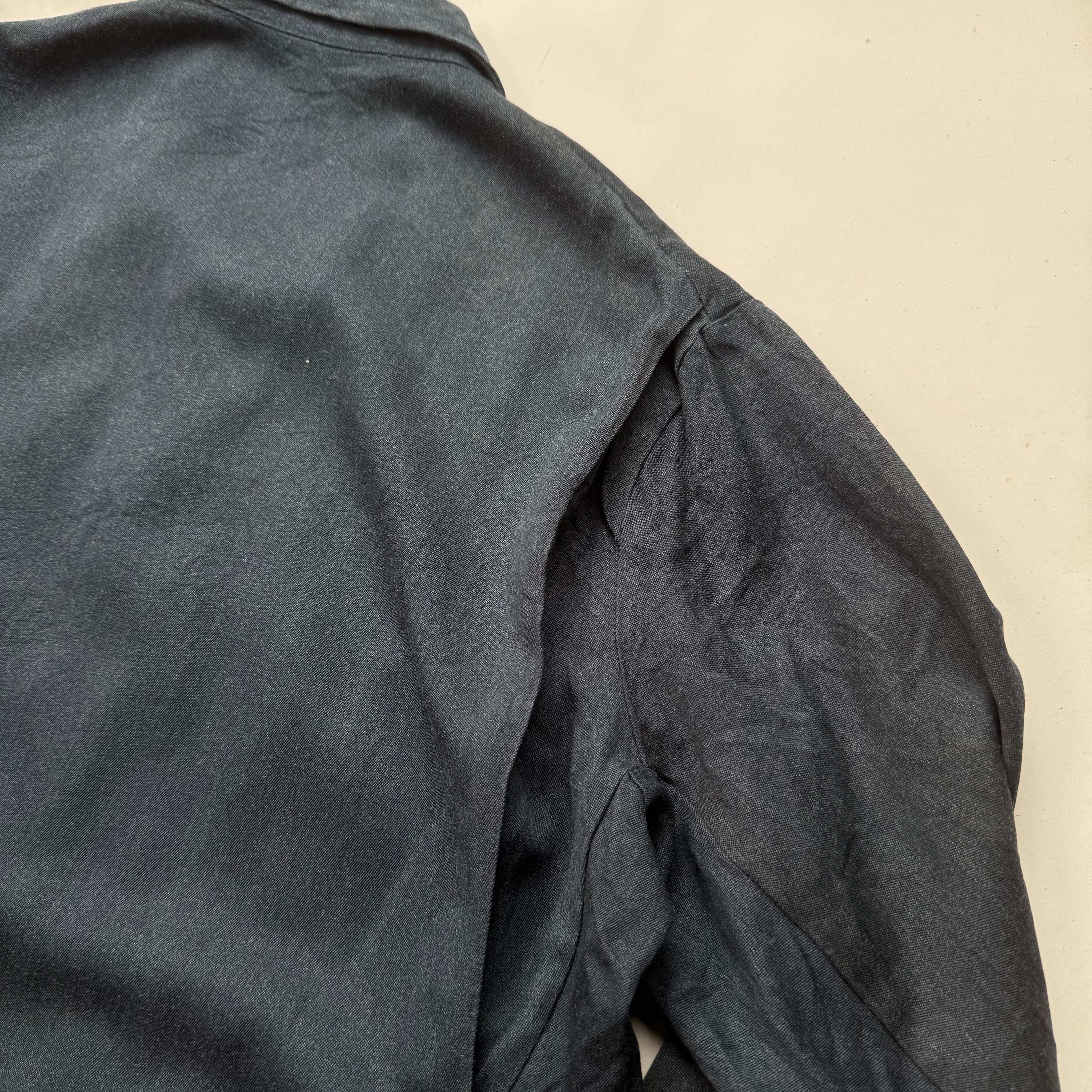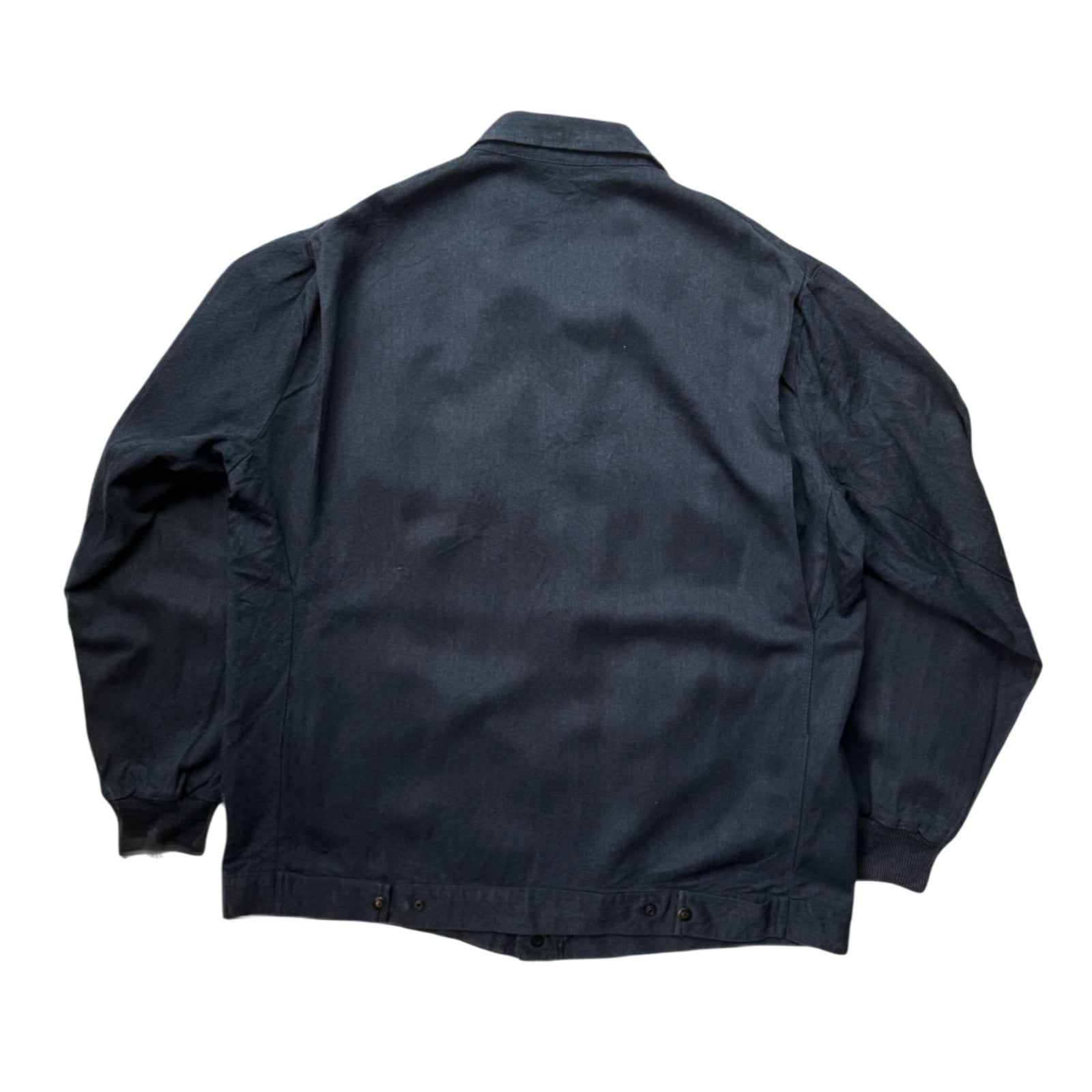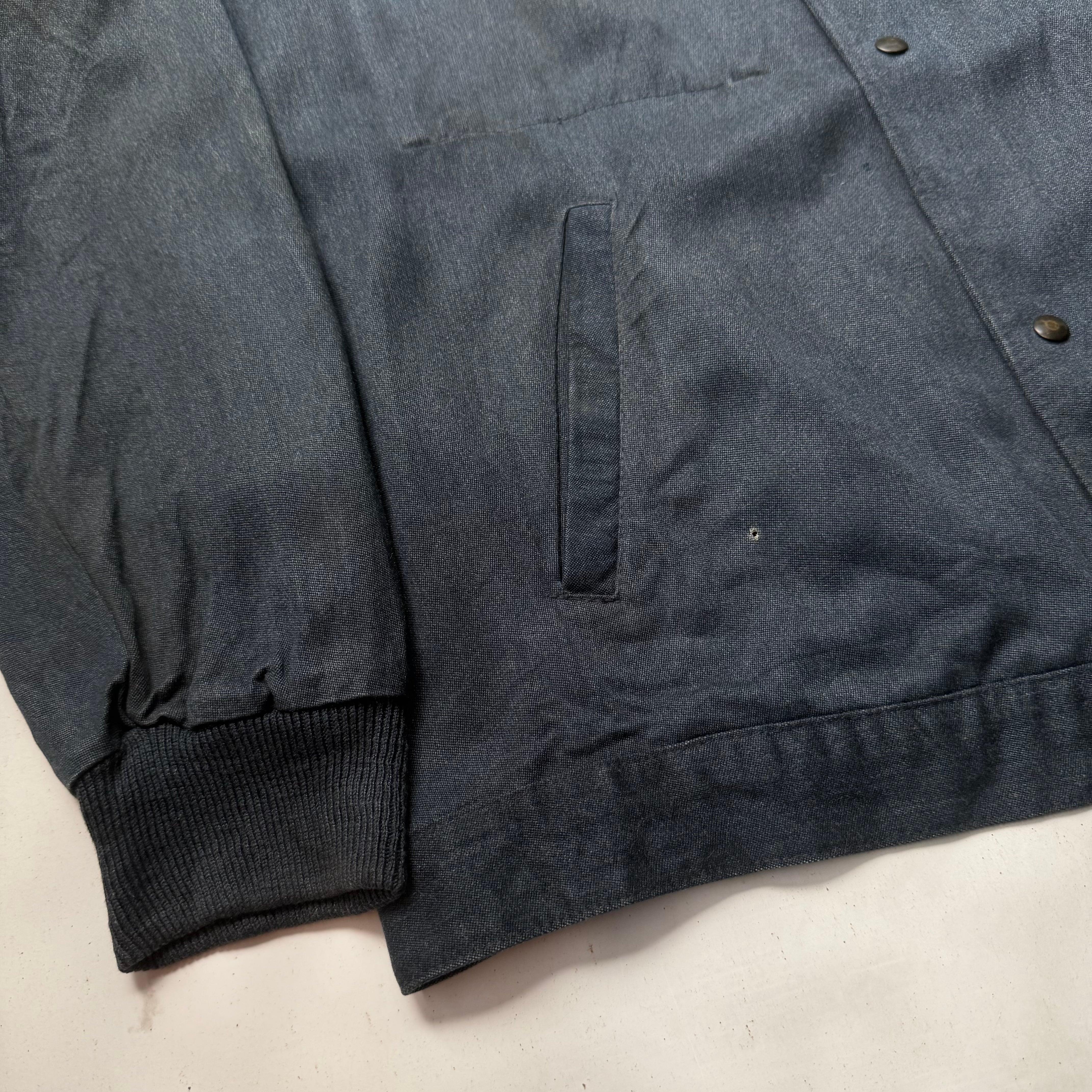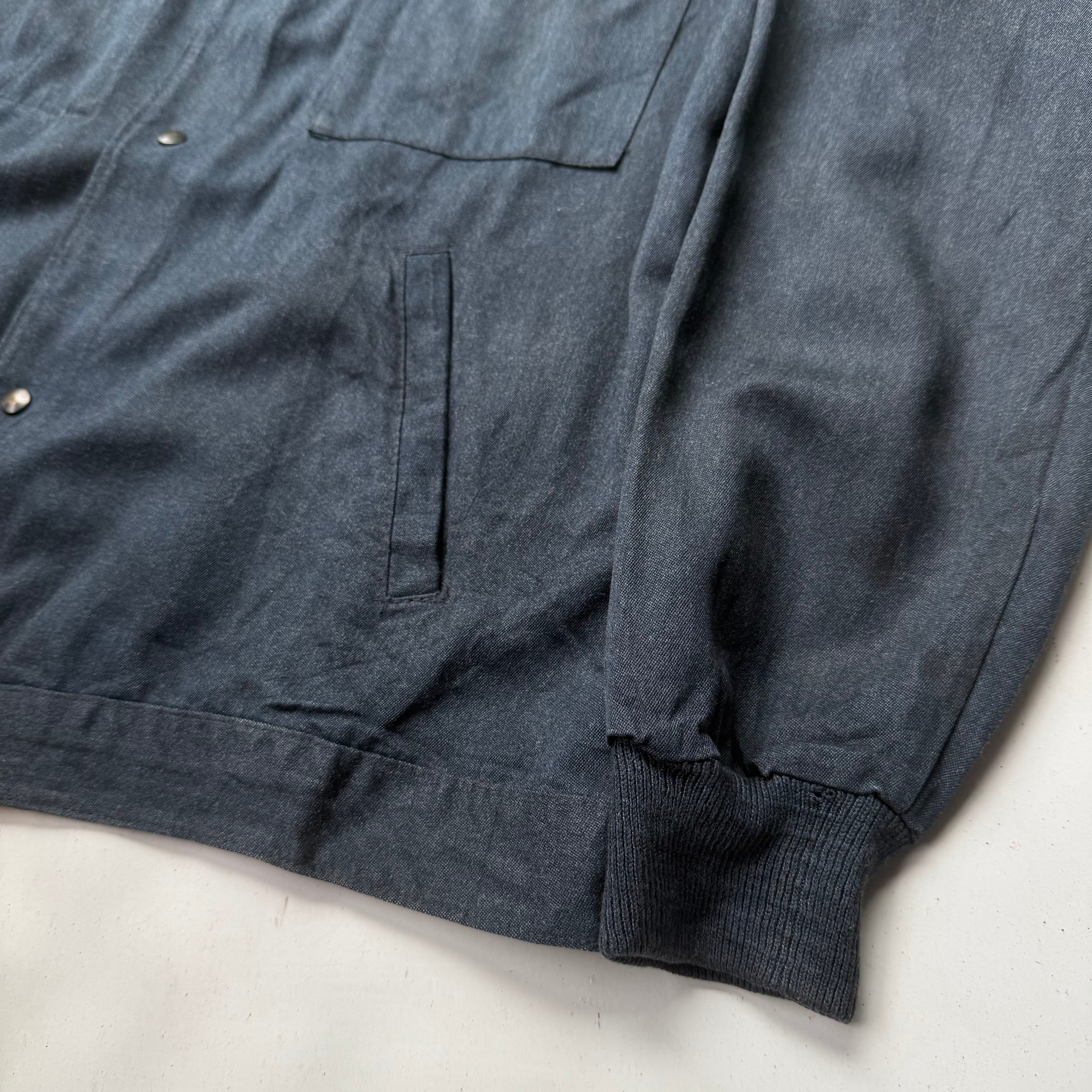 60’s頃のフランス物だと思いますが、コレは詳細不明。ワークジャケット(コーチジャケット風)なデザインで、素材もコットン×ギャバレーヨンのような落ち感にインディゴ染めのような独特な色味。ワークジャケット風に作られたファッション寄りなアイテムな気もしますが、とにかくシルエットがキレイで使いやすく、コレは着たいと思った1着でした。こう言うのがあるから、古着はやめられませんね。