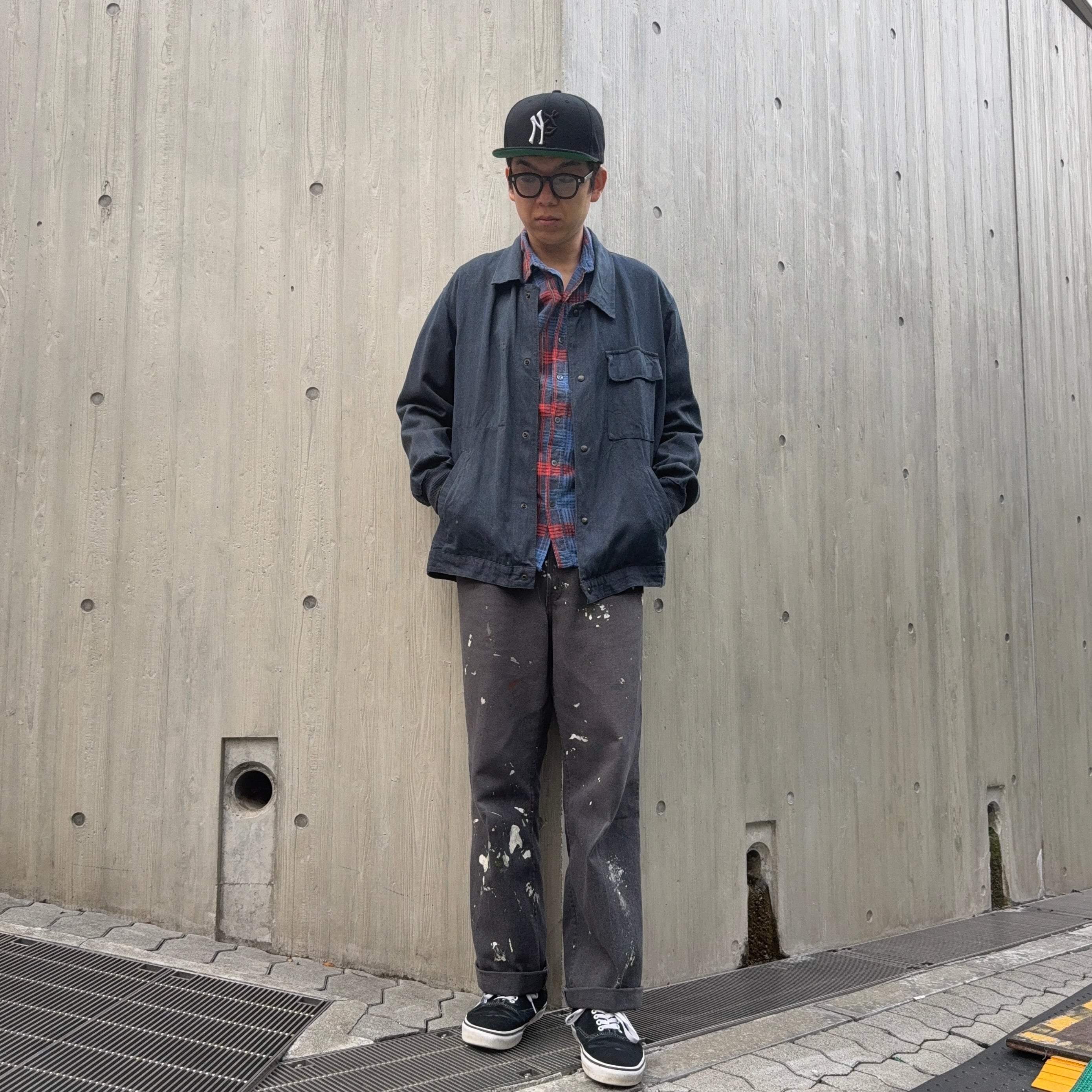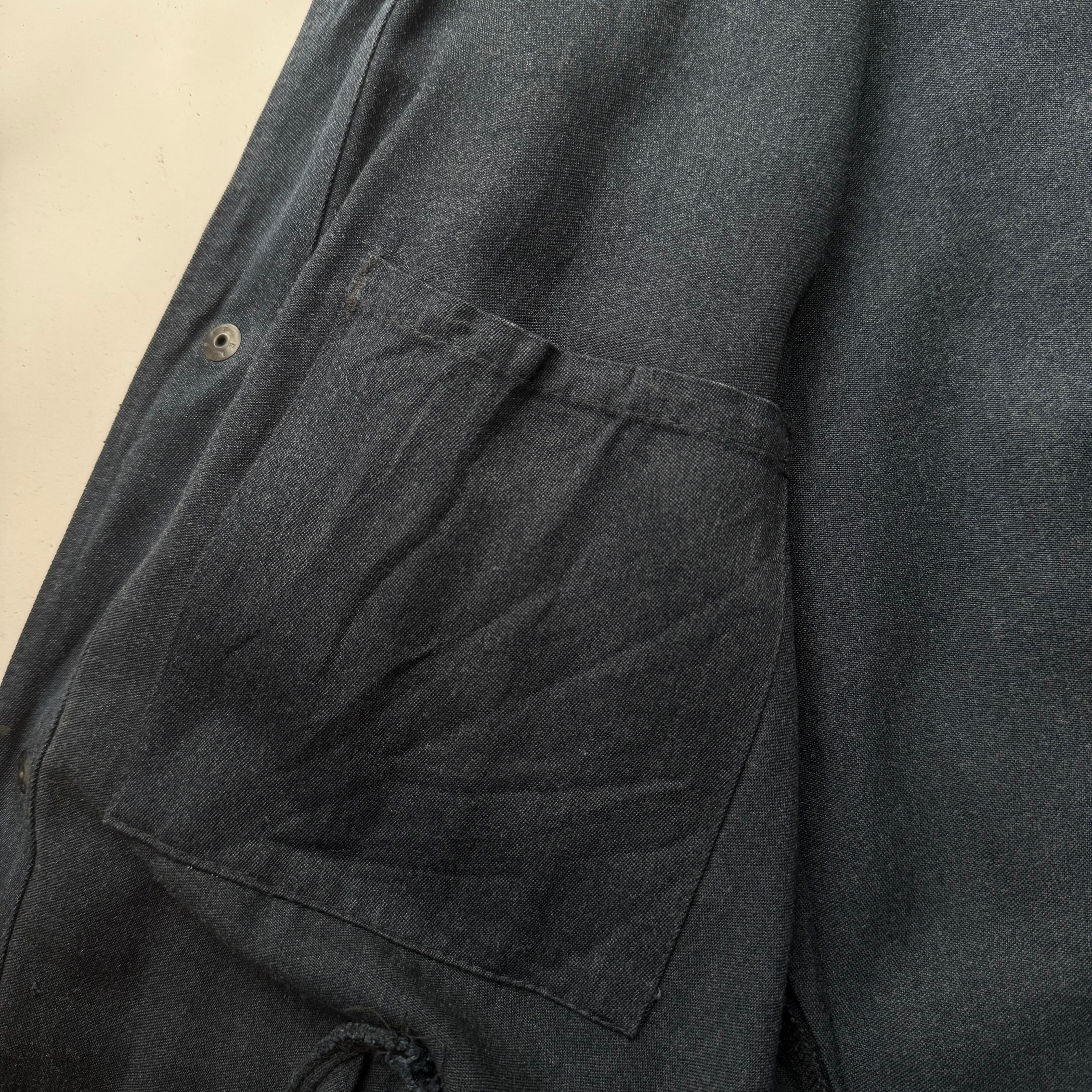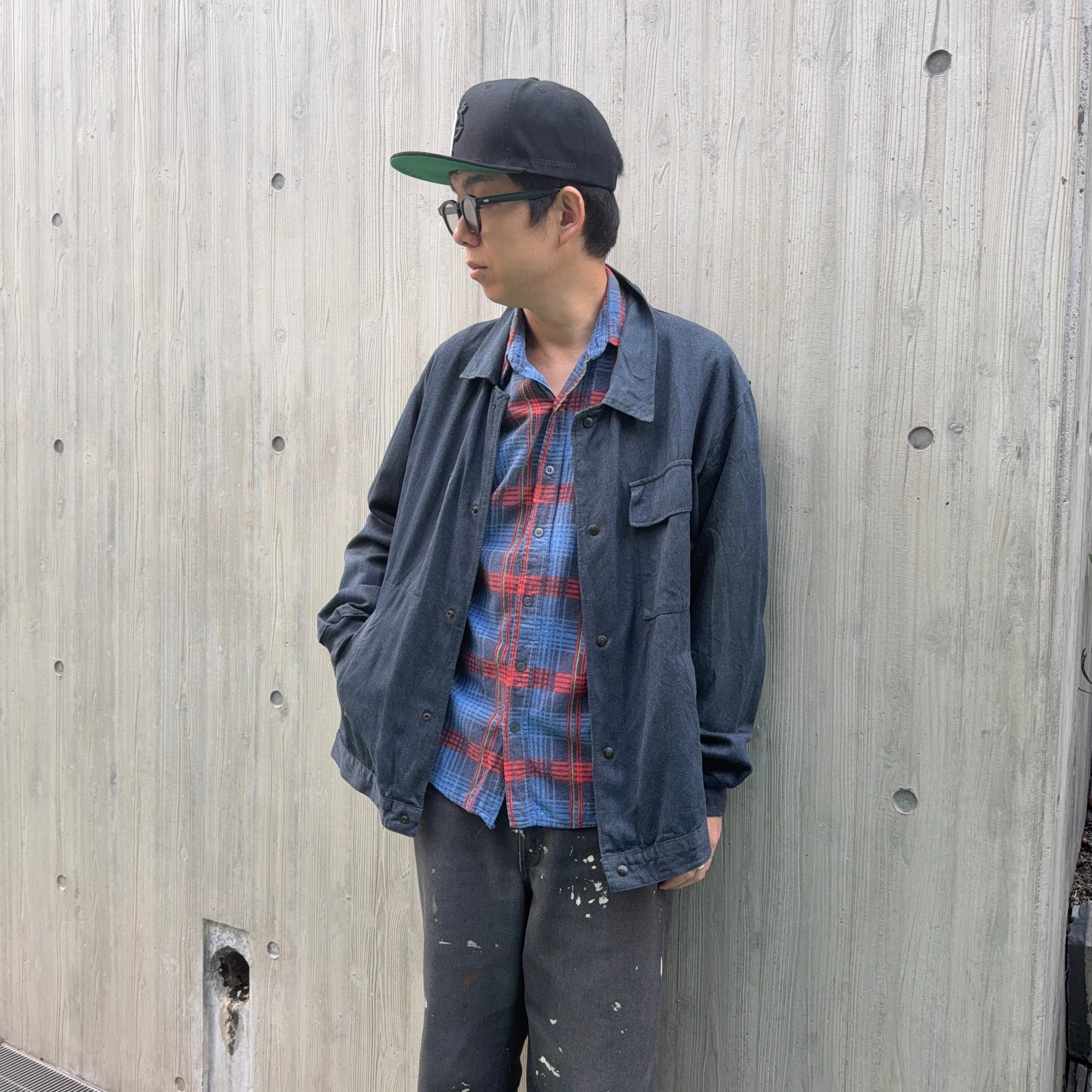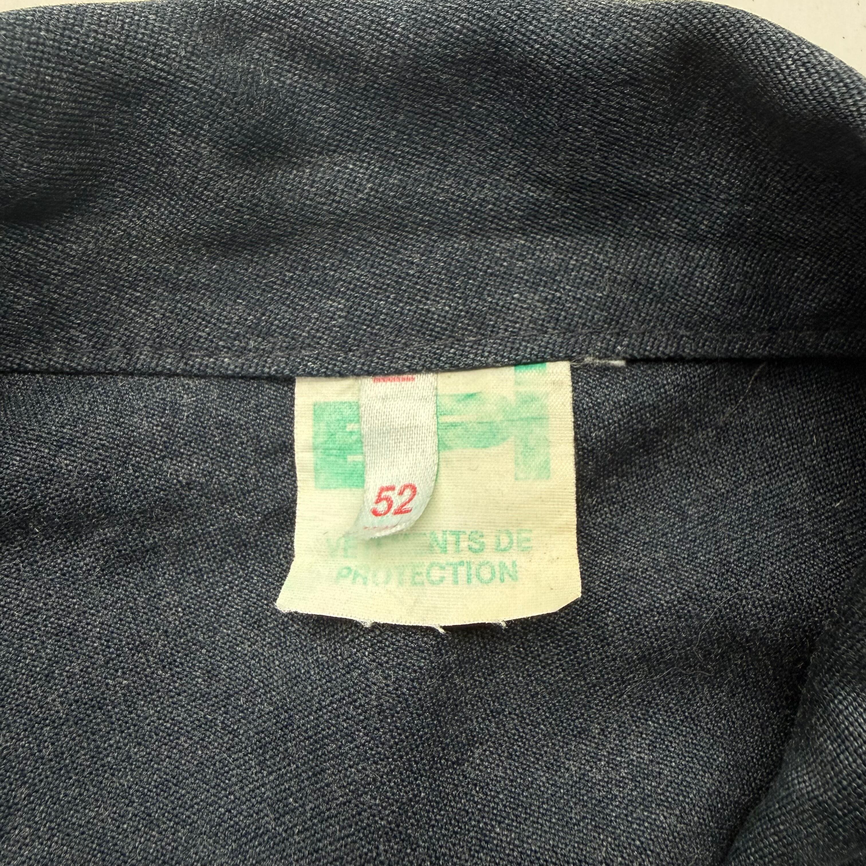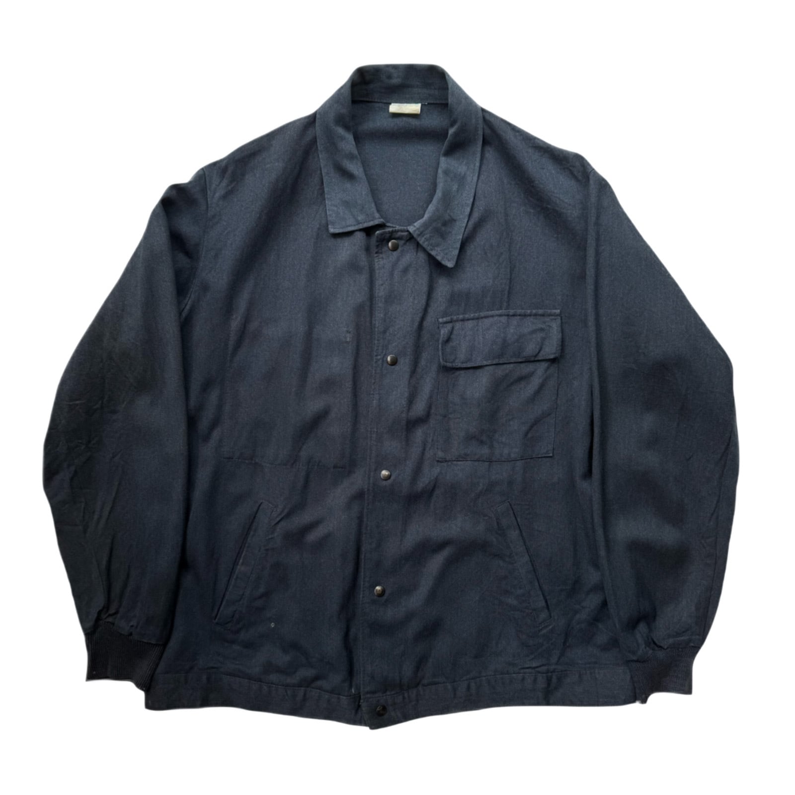 60’s頃のフランス物だと思いますが、コレは詳細不明。ワークジャケット(コーチジャケット風)なデザインで、素材もコットン×ギャバレーヨンのような落ち感にインディゴ染めのような独特な色味。ワークジャケット風に作られたファッション寄りなアイテムな気もしますが、とにかくシルエットがキレイで使いやすく、コレは着たいと思った1着でした。こう言うのがあるから、古着はやめられませんね。
