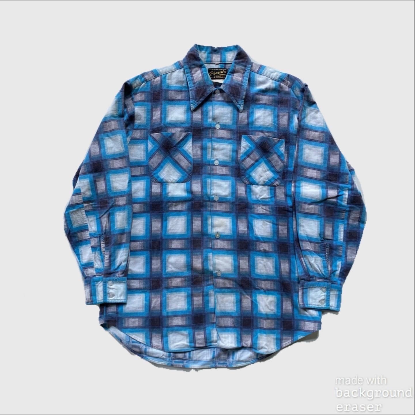 TVで観ていた”高校野球”と同じくらいの瑞々しい青色は“美しい”とすら感じる、素晴らしすぎる色味のプリントネルシャツです。プリントネルシャツは昔から集めていますが、ここまでの物は、そうありません、オススメです。