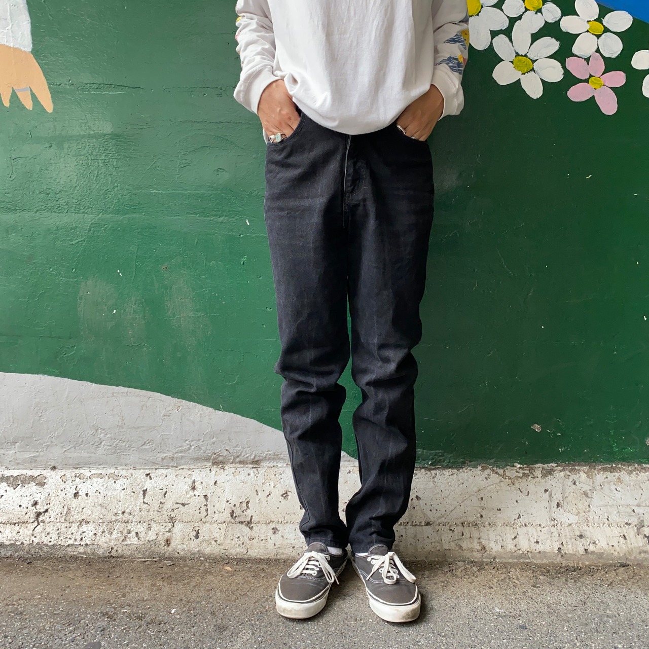 ブラックデニムはLevi’s501が巷では評価されていますが(ボクも好きなのでお店には何本かご用意がありますが)、これはそんな”Levi’s501ブラックだけじゃねーよ”とでも主張しているかのような”GUESS”らしいシルエットが最高です。やっぱりこのシルエットも何処かバックトゥザフューチャー的に見えますね。