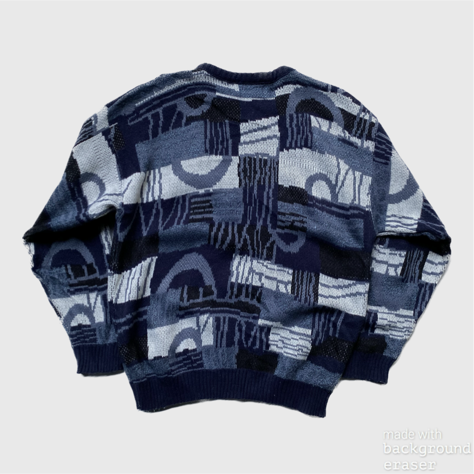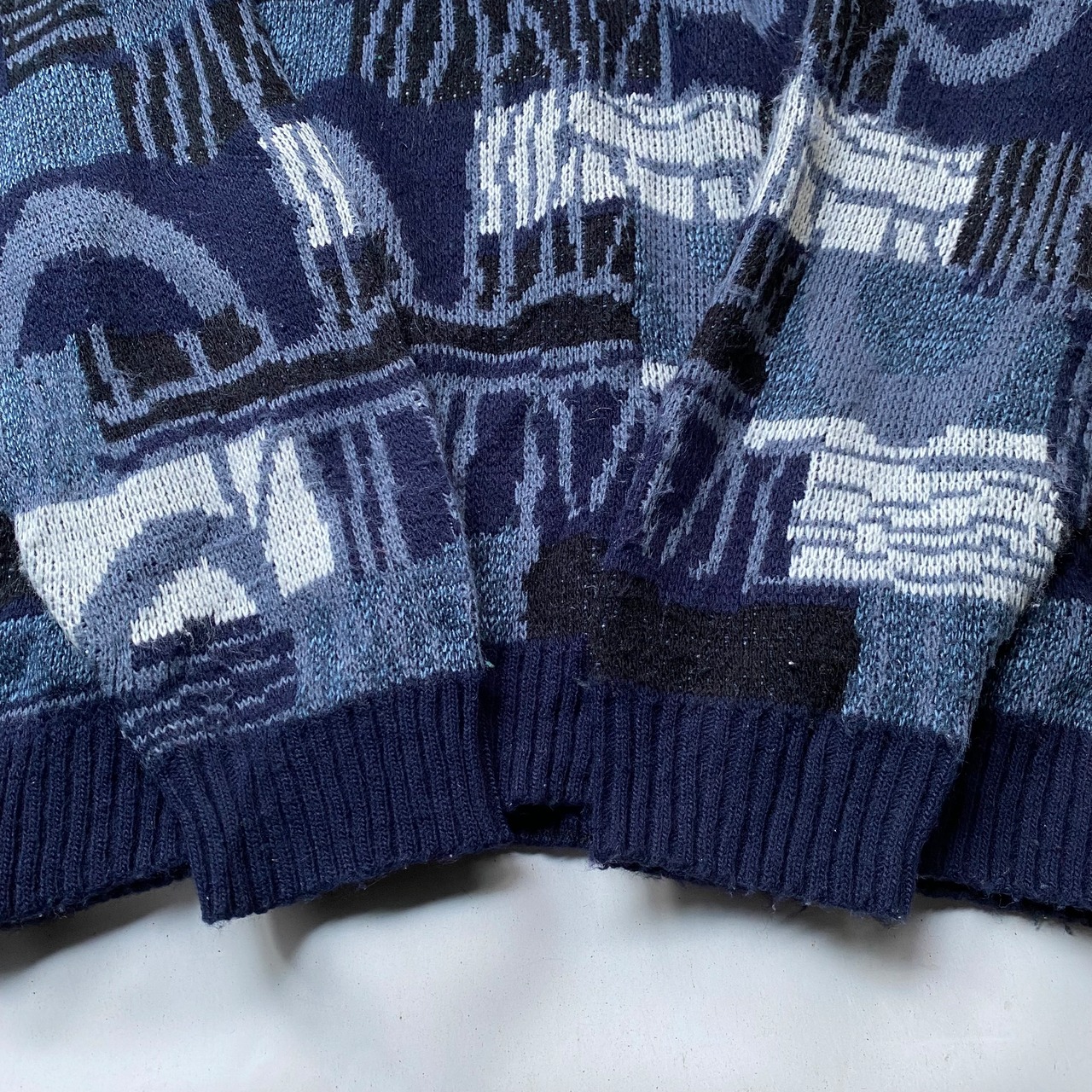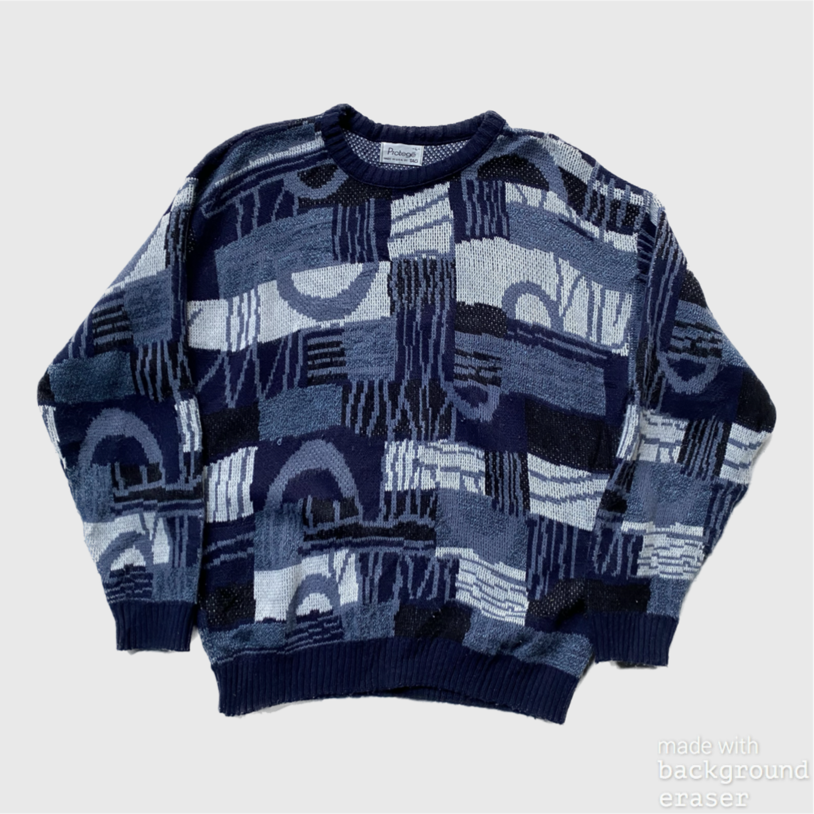 個性的な柄のニットが多い”Protege”のタグがついたデザインニットです。コレも何柄か分からない抽象的な所が魅力ですね。さらにUSA製ですがアメリカを感じない、何処か冷たさのある北欧辺りのデザインにありそうです。