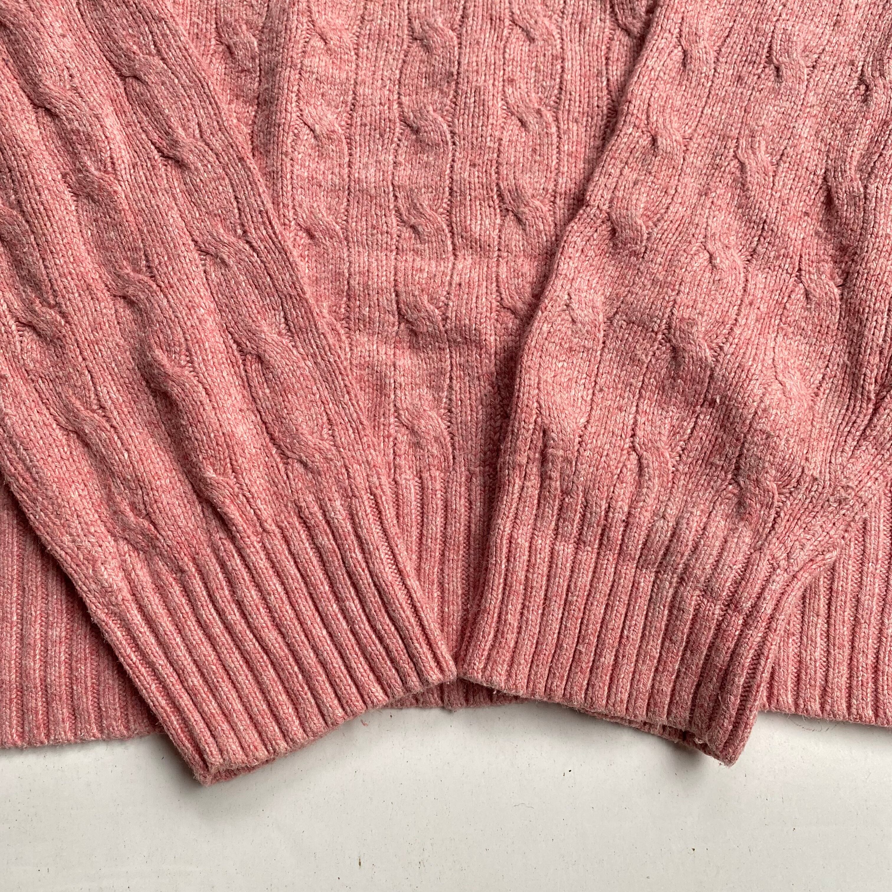 春らしい桜色のラルフローレンのアラン織りニットなのですが、不思議な表記です。なんとシルク100%、後付けの気配もないので恐らく間違え(こう言う素材のシルクがあったら無知ですみません)で、コットン(もしくはリネン)に少しシルクが入っているかもしれないくらいな雰囲気の薄手ニットです。しかし、こう言うエラー品ってラルフローレンにもあるんですね、面白く服好き同士の話題にもなりそうですし、もうちょいしたらお花見に着たいです。