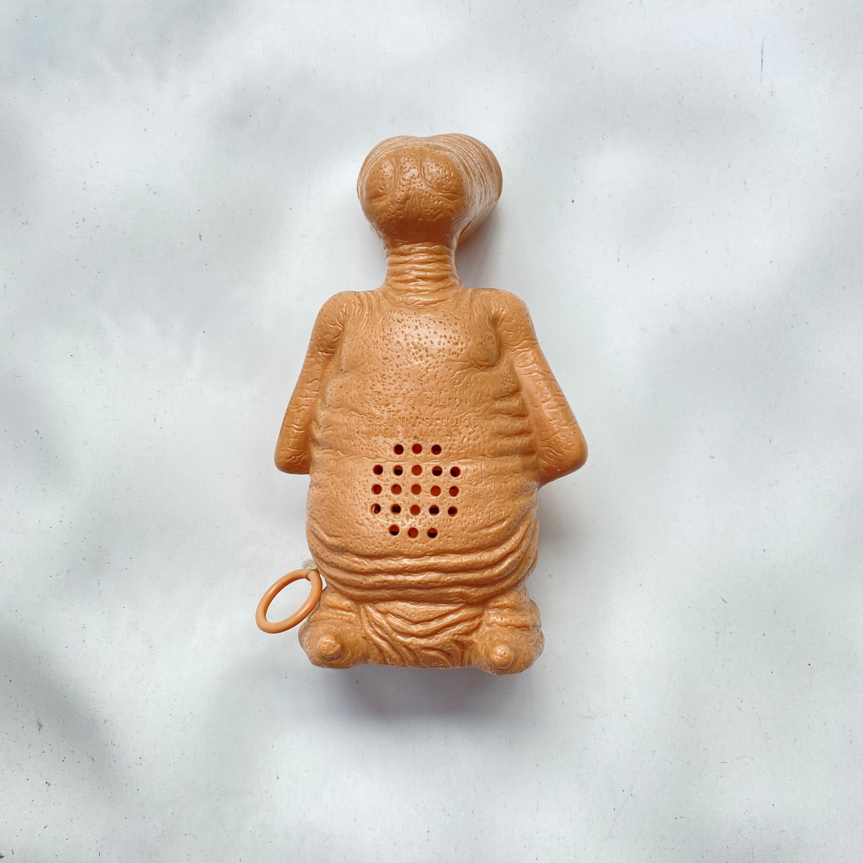 映画公開当時 1982年に発売された”E.T.”のトーキングフィギュア(オフィシャル)です。足元にあるリング(ヒモ)を引っ張り離すと何個か言葉を喋ります。この年代で、しっかり話せる物は中々残っていないかもしれません、コレクションピースとしてなら箱付き(Dead Stock)が正解だと思いますが、部屋のインテリアや子供とかのプレゼントに買ってあげるなら、汚れても気にならないこちらかと思います。