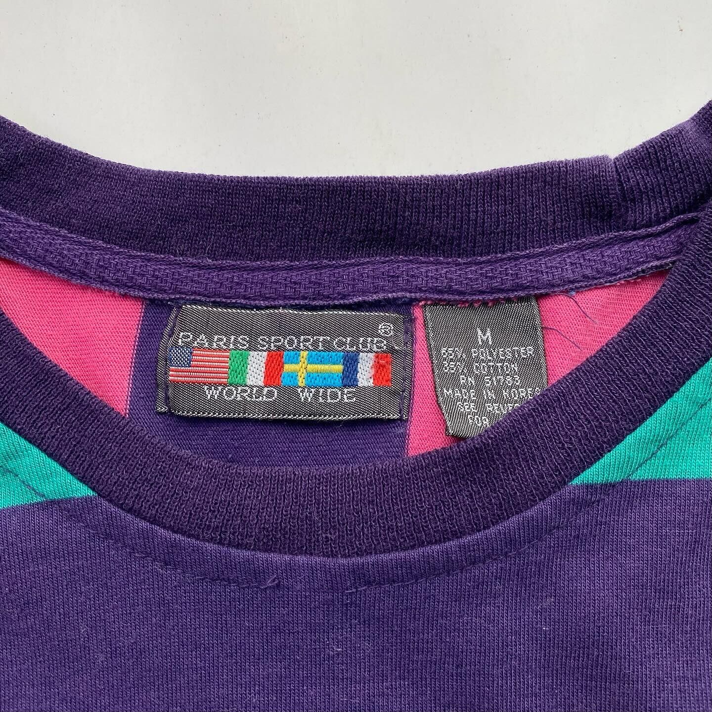 爽やかが売りなボーダーと言う柄を、ここまで気持ち悪い色味と切り替えで仕上げているのが、もはや一周して個人的には最高です。胸ポケットには、”PARIS SPORT CLUB”のタグ付き、80’sのダサキモかわいい、今絶対作られないタイプ。流石に売れないかなぁ(笑)。