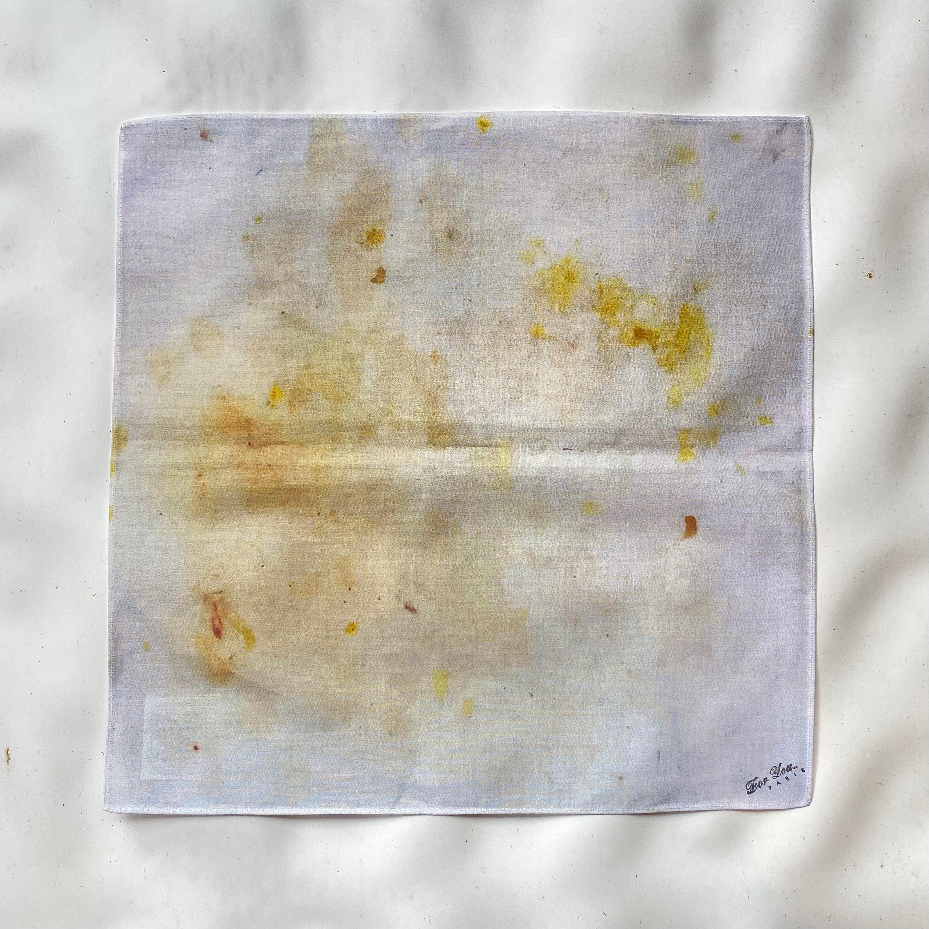 コレは汚れているワケでなく(笑)、汚したハンカチをそのままデザインとして印刷した物。ハンカチなんてどうせ汚れると言うのを逆手に取ったデザインがクールです。