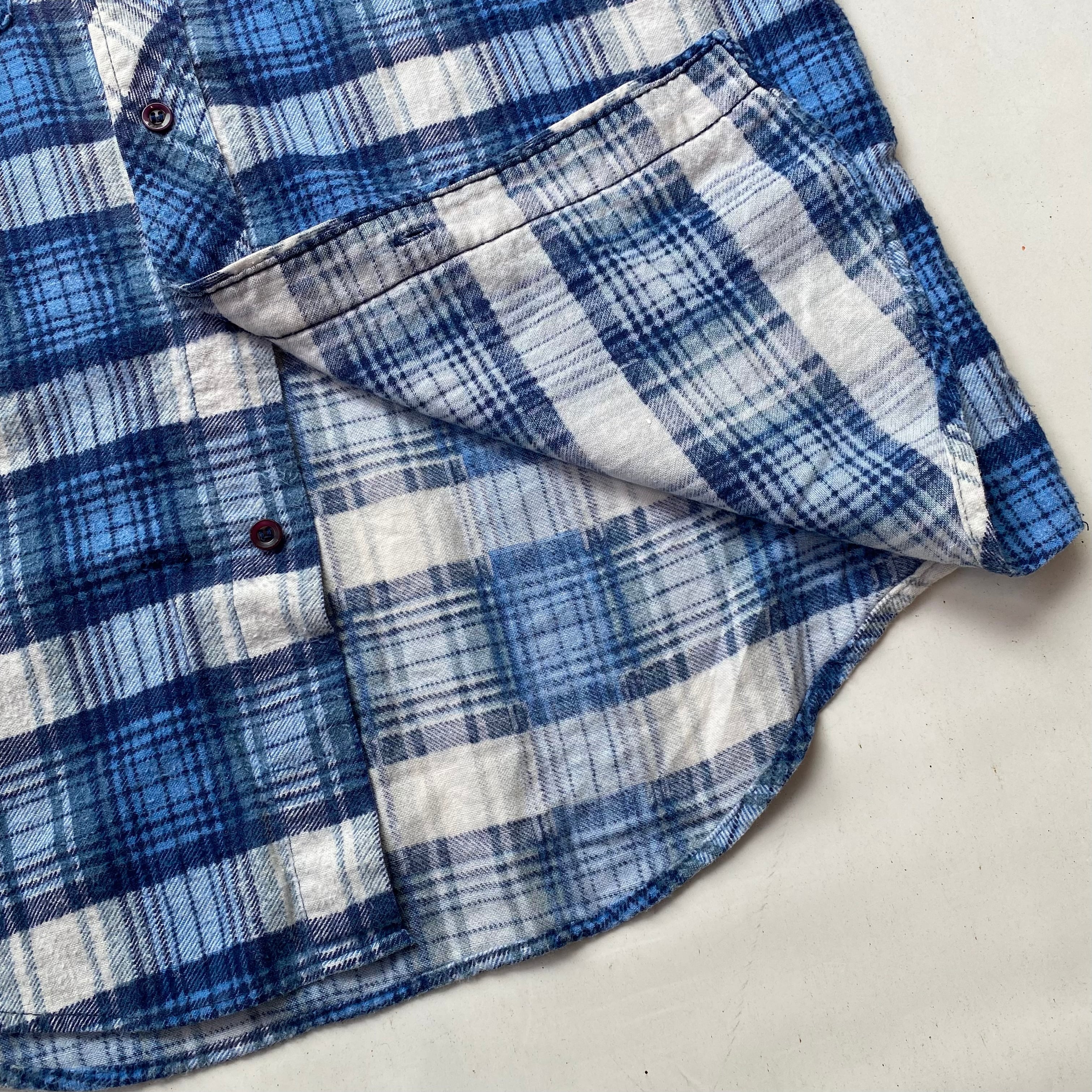 カッコ良いシャドーチェックでもアメカジ全開なブロックチェックでもない、この”青さ”があるどうしようもないギリギリのラインのネルシャツが大好きです。アメリカの青春映画でいじめられてダメな主人公が着ていそうなこの感じ、もしくは世代によってはスタイリストの伊賀大介さんを彷彿させるこの感じ、分からない人には分からない感じ(コレはダサいからあんまり言わないようにしていますが…)、ネルシャツだけは今も昔も荒らされていないジャンルで大好きです。その為、放課後の思い出ではネルシャツだけはオールシーズン入荷&置いていますが、中々紹介はしていませんが、久々のご紹介なんで何か感じた人は是非。ネルシャツは好き過ぎるので、基準が厳しくより厳選チョイスしてます(この基準は年代とかレアとかじゃなく、ボクが何かを感じる物のみと言うエゴですみませをん)。まだまだ楽しめるネルシャツに至っては流行らないで欲しいって本気で思ってます。適当に買って、適当に着るが楽しめるジャンル、「まだ暑い?」、「うるせぇな、夏は腰に巻いとけ」くらいなノリです。ここだけは、乱暴に着て欲しいし、それくらいが丁度良いです。