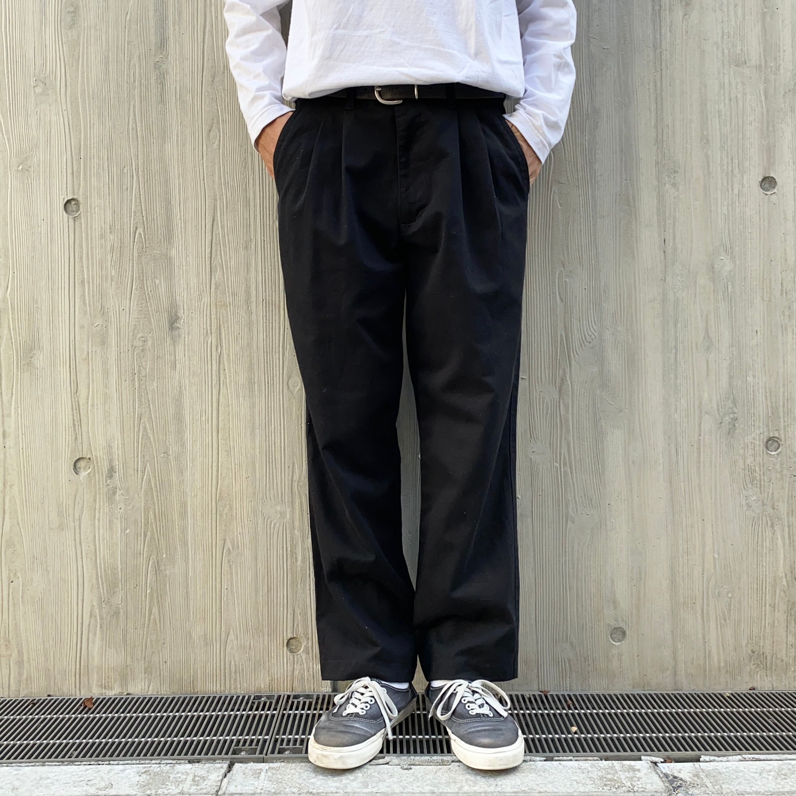 ブラック、2タック、W32×L30、おじさん世代には少し嬉しいスコビルジップ。とコレと言った特徴はないパンツですが、こう言うのが汚れてもすぐ洗えるし、1番穿いちゃうって、ついつい手にとってしまう1着なはずです。春夏、店舗で実際1番動いたのが、この手の物だったりします。遠方のオンラインショップのお客様も是非試してみてください。