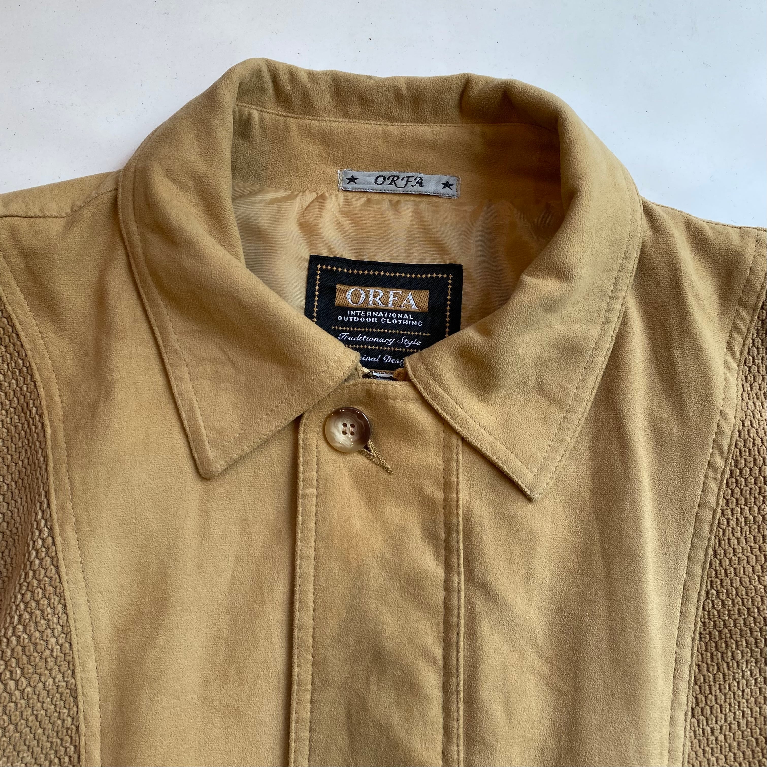 フェイクスウェード×サーマルのコンビなルーズシルエットのブルゾン。たっぷりと長めなアームホールにドレープ、シャツやニットを沢山レイヤードした最後の仕上げに着たいオシャレな1着です。同色のコンビなので、やり過ぎないデザイン性も良いですね。