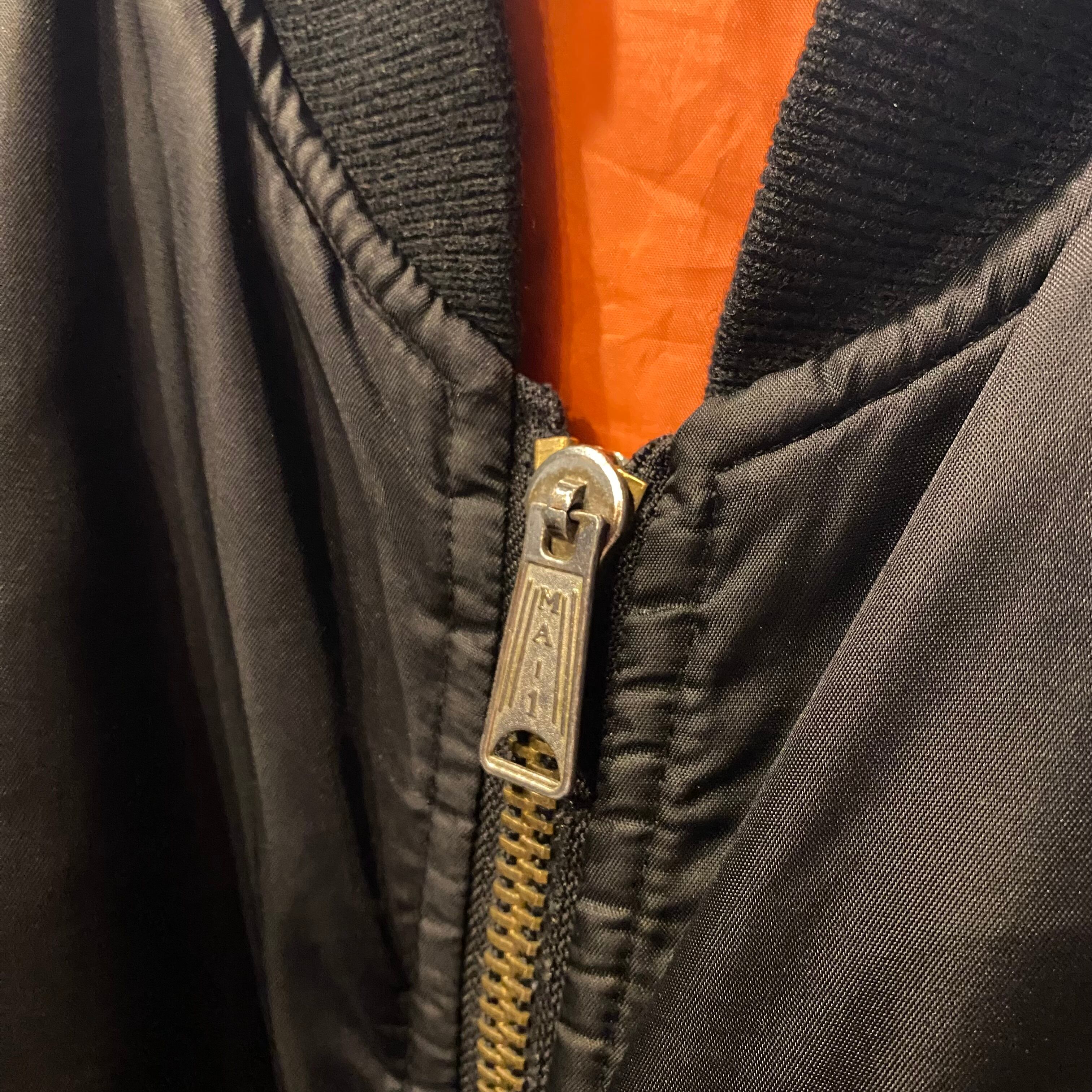 詳細不明、ジップにはMA-1、リバーシブル、2XLの丸みあるビッグシルエット、重たすぎない質感も好みで、完全なるルックス(見た目)のカッコ良さで選びました。