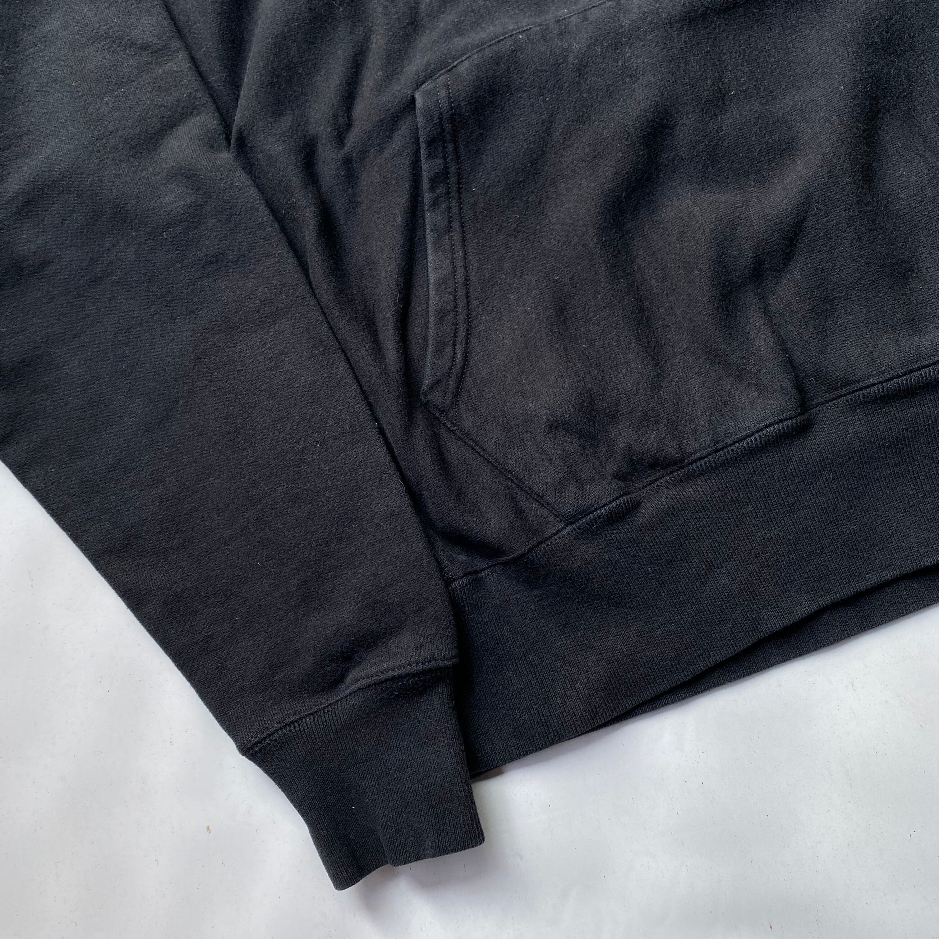 昔からのアメカジ古着の定番といえば”Champion”の名作”リバースウィーブ”ですが、近年は90’s辺りの物まで高騰しすぎて、サクッと軽い気持ちで楽しめないのが正直な所。ボクは、価値としての古着に対した興味はなく(勿論好きな物もありますが)、どちらかと言うとファッションとして取り入れたい派なので、ここ何年はこのUS規格物のリバースウィーブの調子が良く、実際着ているのもこのタイプ。むしろ、ディテールやシルエットまで良く出来ていますし、何か高くて良いモノを着ている人って思われたくないんですよね、ここ最近は。ブラックのリバースウィーブパーカーの令和版の定番は手に取りやすいコチラがオススメです。ボク個人は、メインでと言うよりは、ナイロンジャケットの中に仕込んでレイヤードを楽しむのに良く使います、フードの立ち上がりがいいんです。そして、目(Championの”Cマーク”)だけじゃなく、”Champion”としっかり刺繍された胸ロゴも良きです。