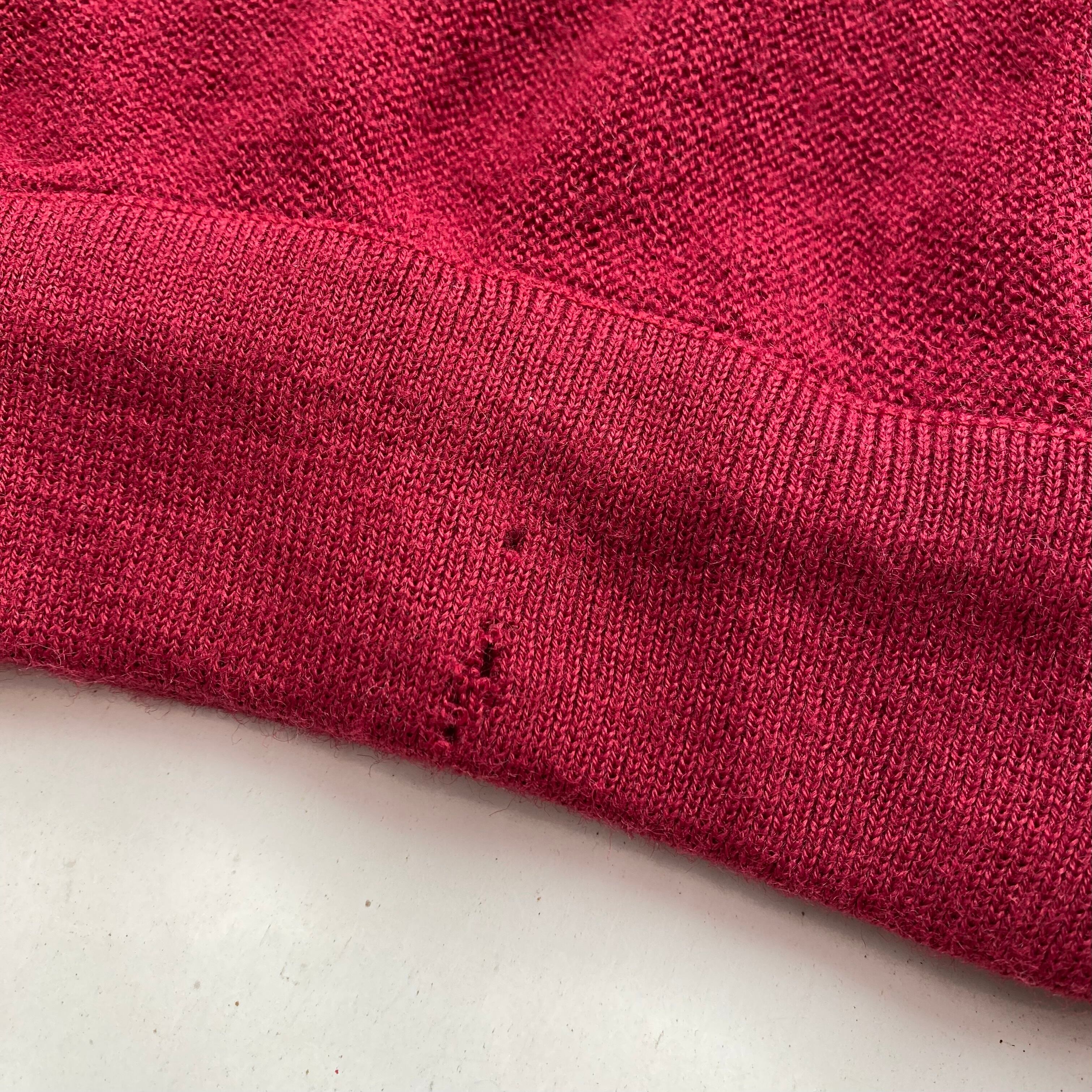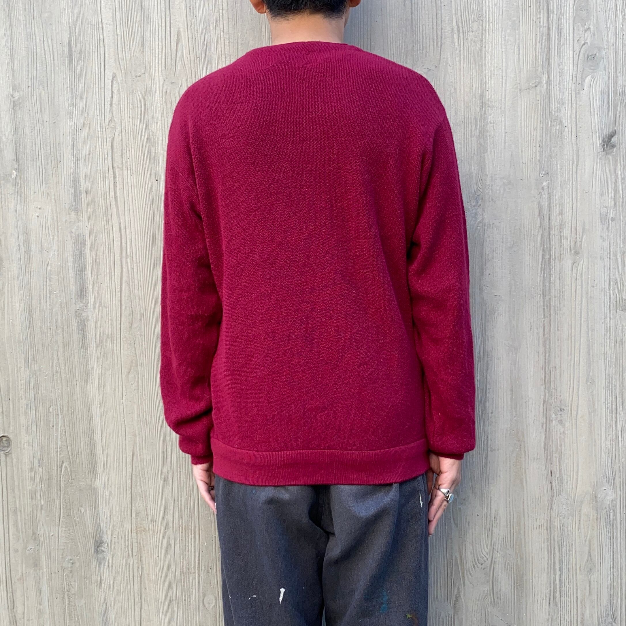 冬でもプリントTシャツは着る派には、重宝するのがこの胸にロゴやマークがないサラッと着れるアクリルカーディガン。少し洒落たワインレッド色(コレがダークトーンの多い冬場に重宝します)、勿論サイジングは少し緩めで、ざぶざぶ洗えるのも日常着の条件ですね。部屋着にもオススメなのに、そのまま外にも出れるのがいいんです。