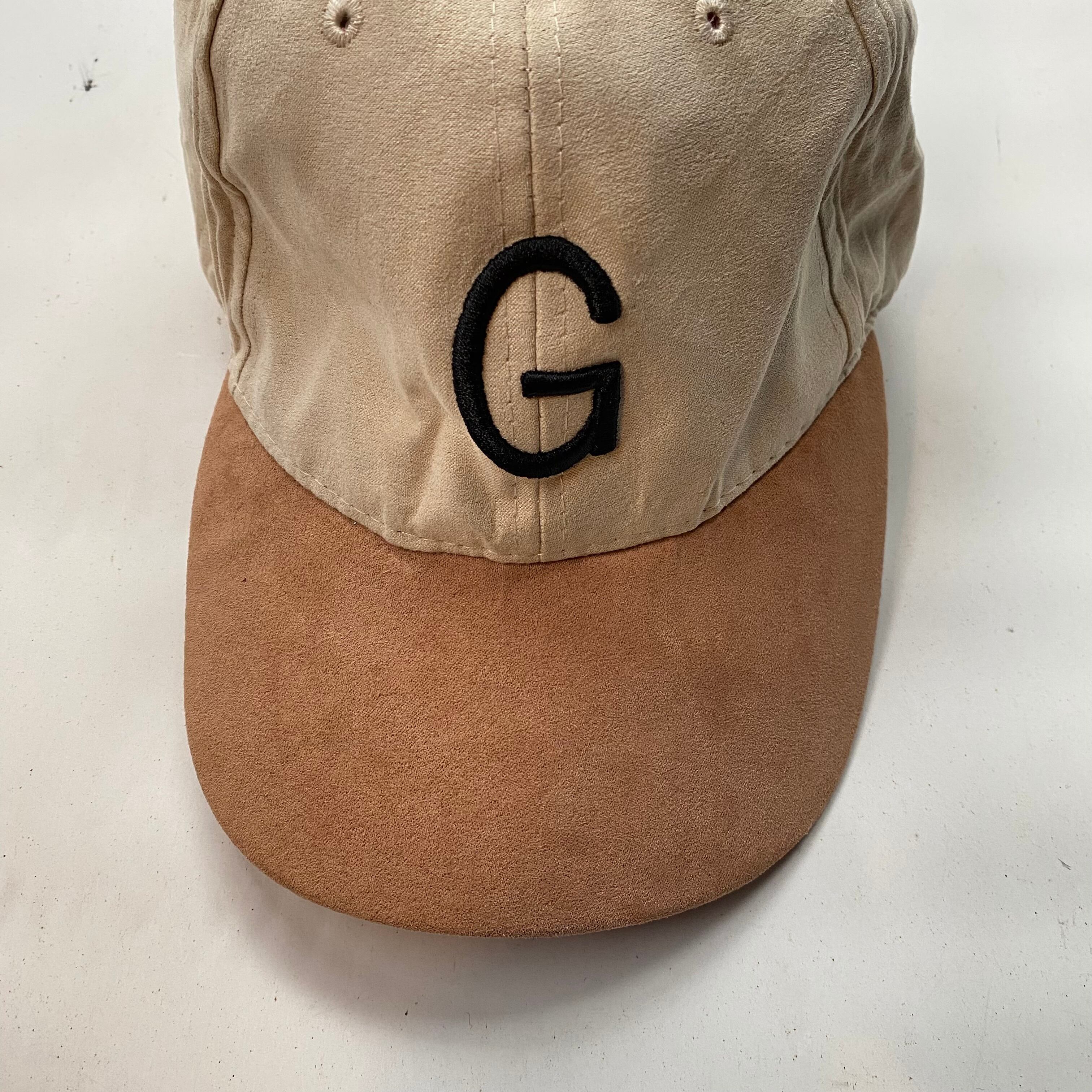 “G”の刺繍に、しなやかで軽いスウェード(もしくはフェイクスウェード)の2トーン。グッドイナフ、ジャイアンツ、もしくはガ行に何か思い入れがある方、いかがでしょうか?